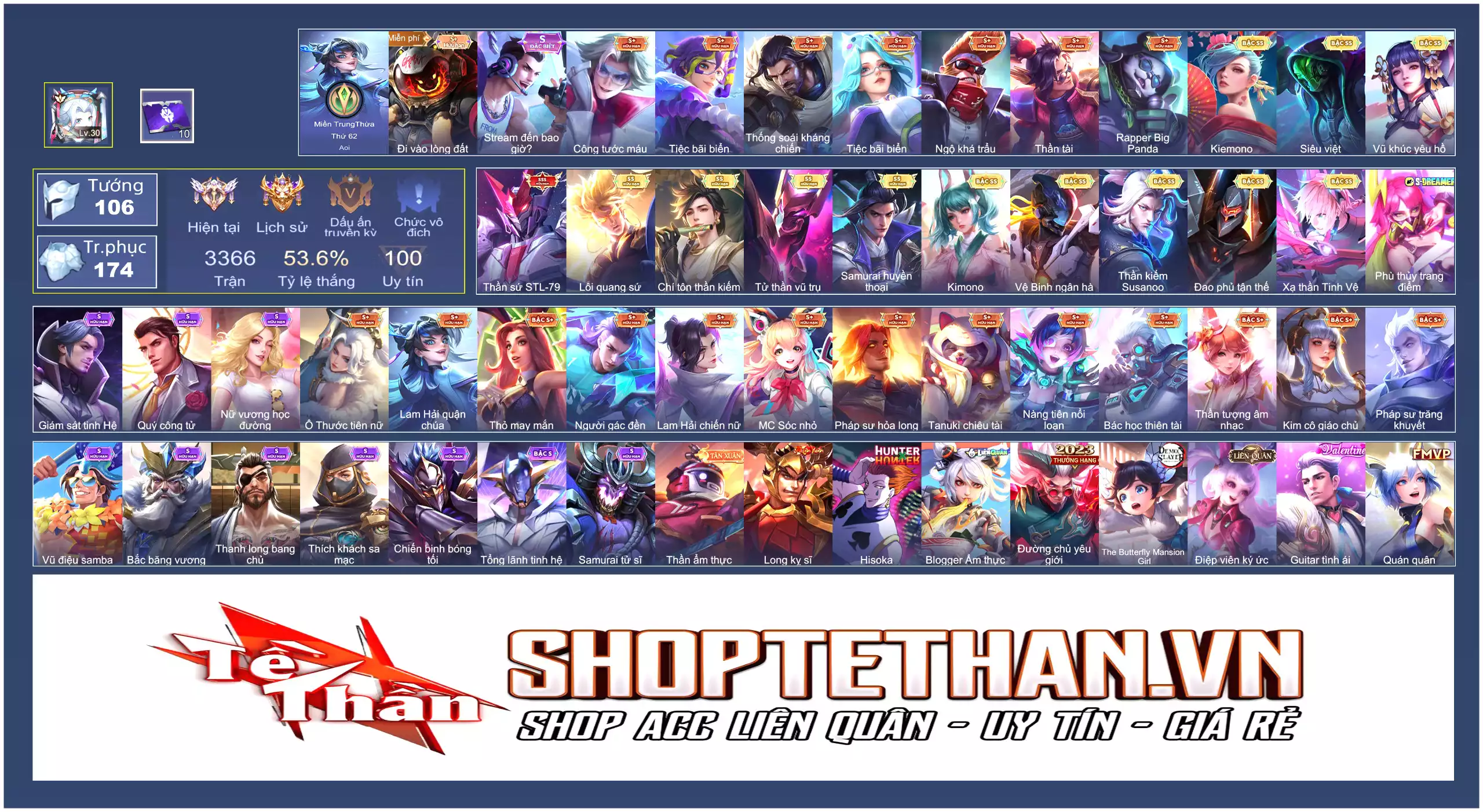 Loại acc | MUA ACC LIÊN QUÂN VIP: SKIN SSS, ANIME, CỤC VÀNG, MÁC THÁCH ĐẤU |