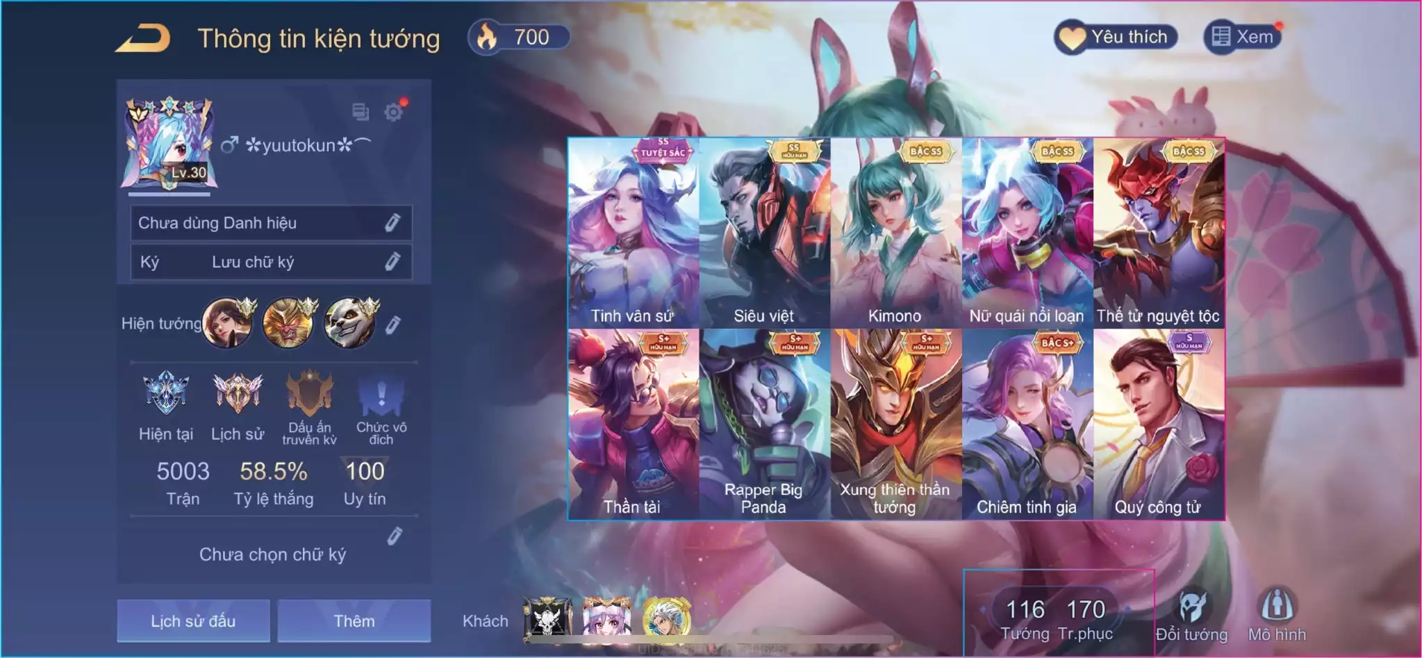 Acc #27026: Lauriel tuyệt sắc,Murad siêu việt,Capheny kimono…Trắng thông tin không liên kết, giá 450,000 đ