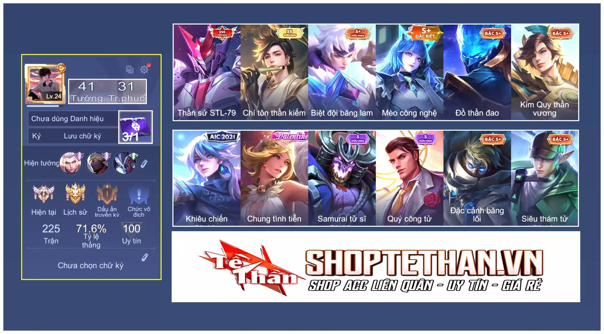 Loại acc MUA ACC LIÊN QUÂN VIP: SKIN SSS, ANIME, CỤC VÀNG, MÁC THÁCH ĐẤU