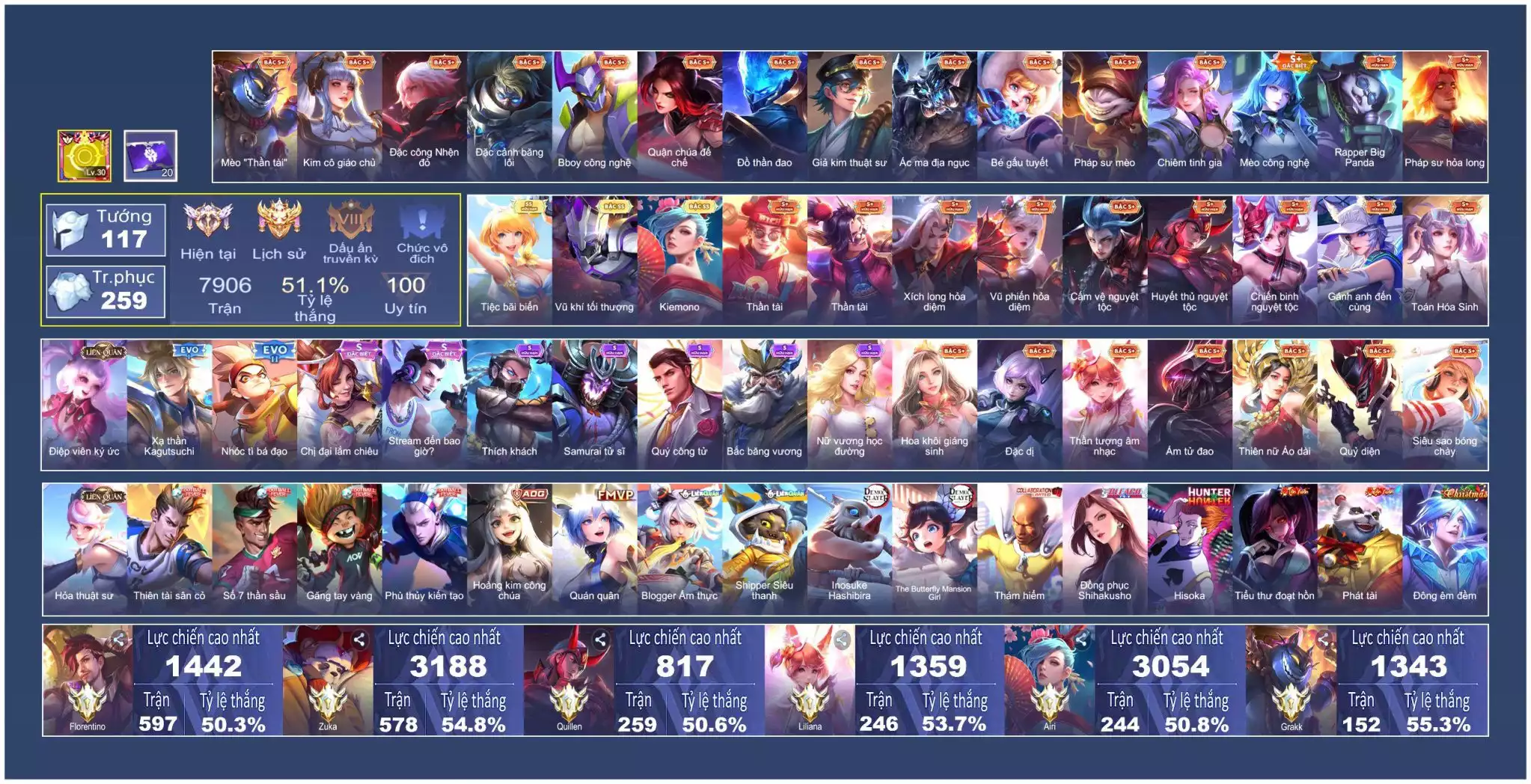 Acc #27213: Vio bãi biển, Vanhel tối thượng, Airi kimono, Nak bboy, Aoi hoàng kim .... Mỗi SĐT, giá 700,000 đ