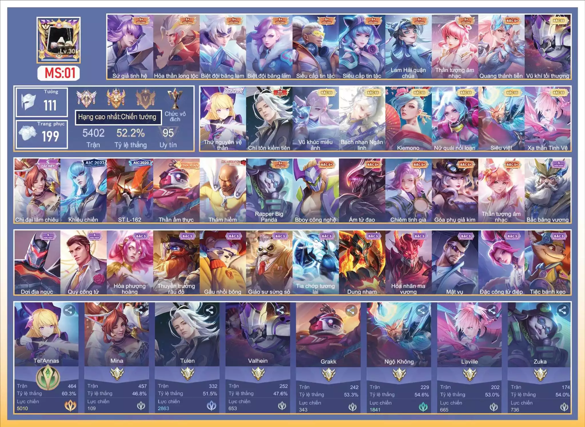 Loại acc | MUA ACC LIÊN QUÂN VIP: SKIN SSS, ANIME, CỤC VÀNG, MÁC THÁCH ĐẤU |