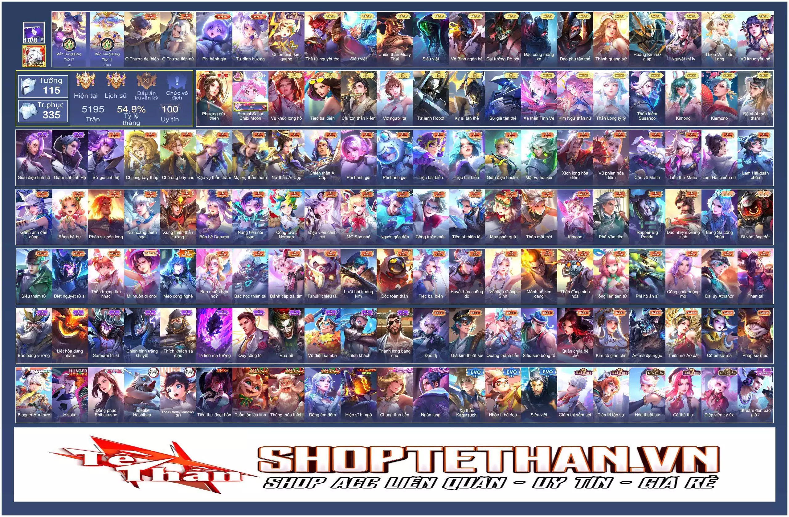 Loại acc MUA ACC LIÊN QUÂN VIP: SKIN SSS, ANIME, CỤC VÀNG, MÁC THÁCH ĐẤU