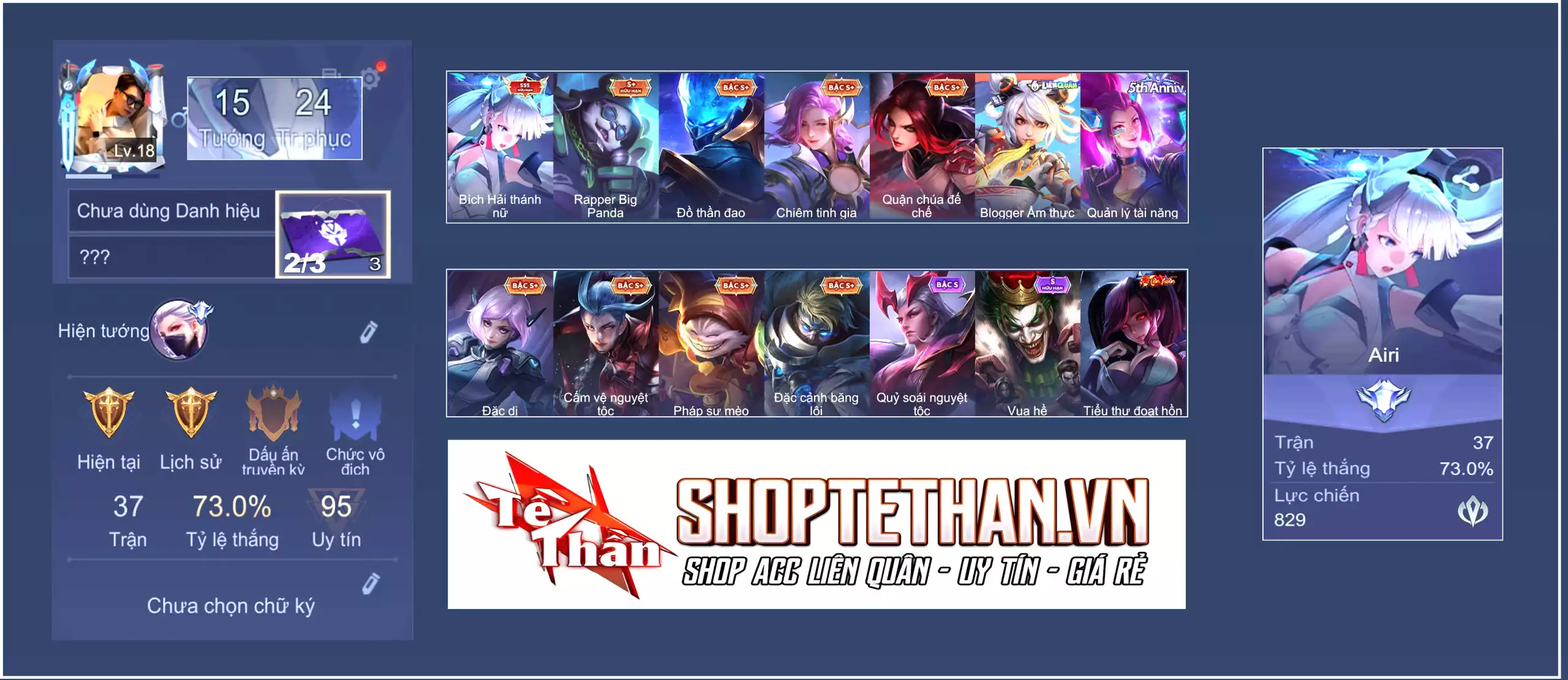 Loại acc | MUA ACC LIÊN QUÂN VIP: SKIN SSS, ANIME, CỤC VÀNG, MÁC THÁCH ĐẤU |