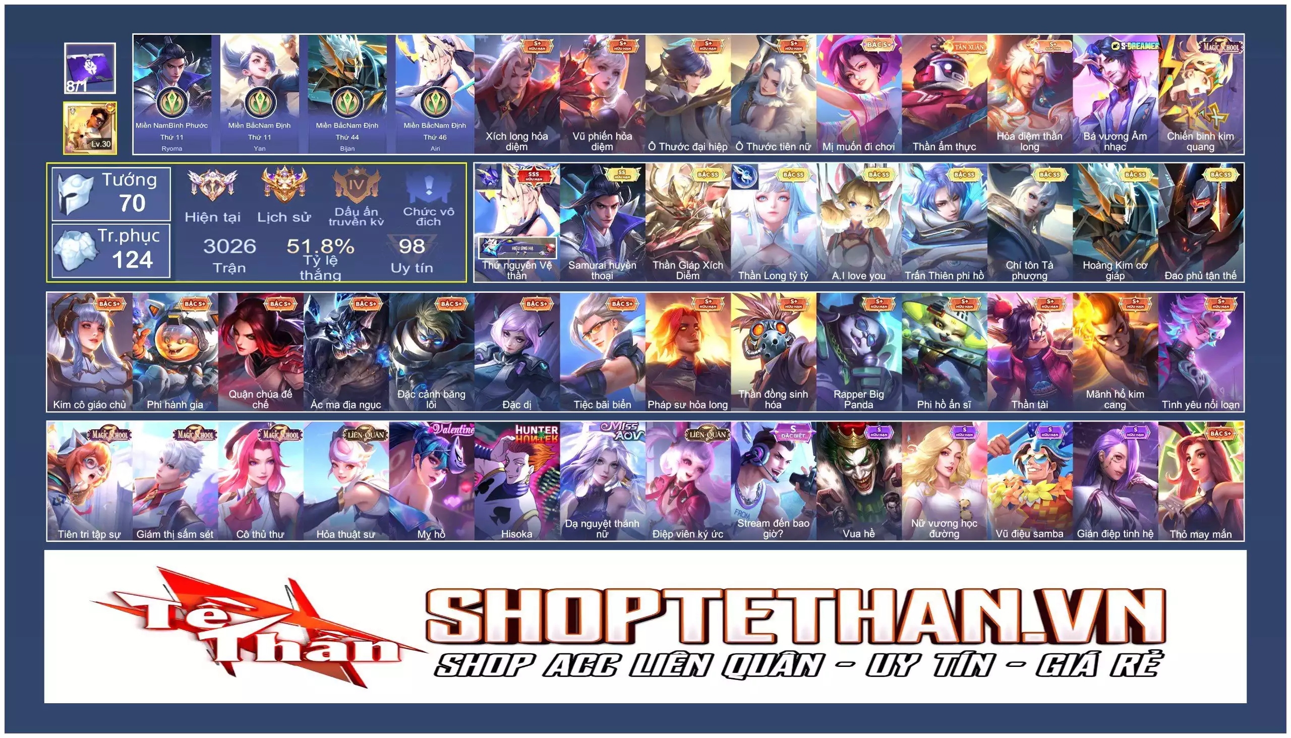 | Loại acc | MUA ACC LIÊN QUÂN VIP: SKIN SSS, ANIME, CỤC VÀNG, MÁC THÁCH ĐẤU |