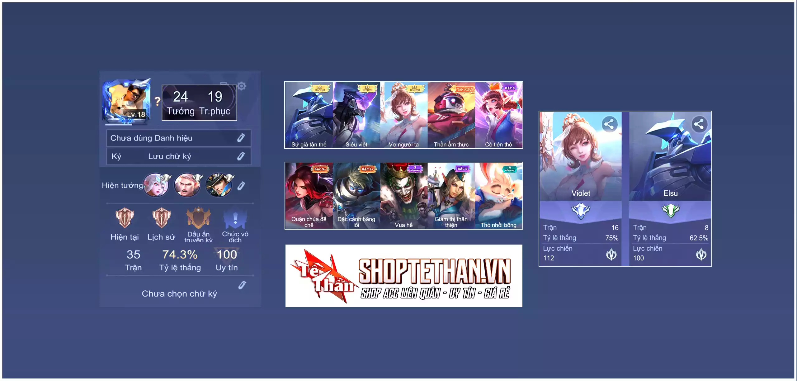 Acc #28988: Elsu sứ giả tận thế, Zephys siêu việt, Violet vợ người ta... CHỈ CÀI SDT, giá 500,000 đ