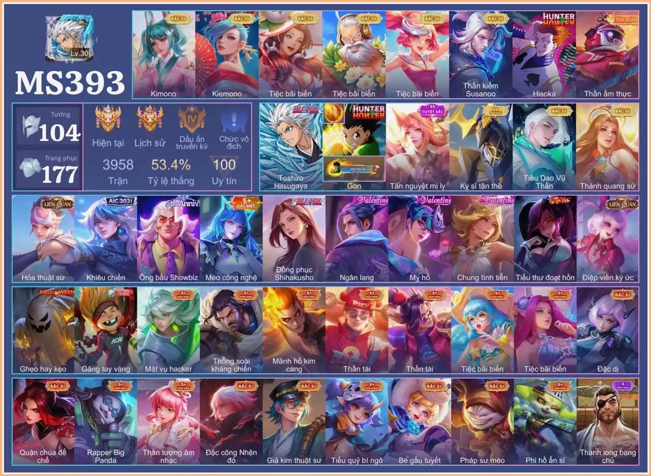 Loại acc | MUA ACC LIÊN QUÂN VIP: SKIN SSS, ANIME, CỤC VÀNG, MÁC THÁCH ĐẤU |