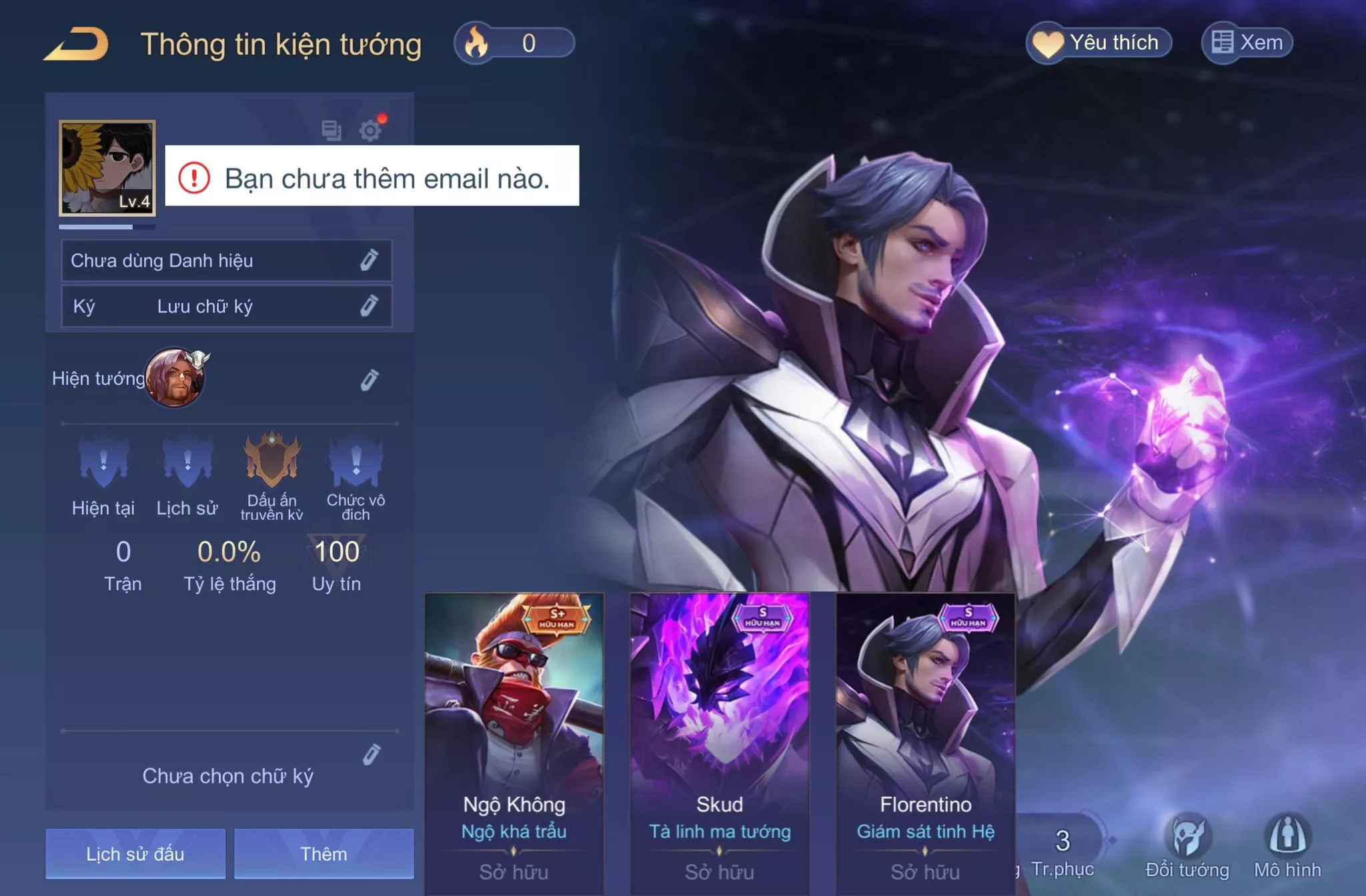 Acc #29181: Acc reg Florentino giám sát tinh hệ, Skud tà linh, Ngộ khá trẩu, sẵn tướng, free đổi tên, trắng thông tin, giá 179,000 đ