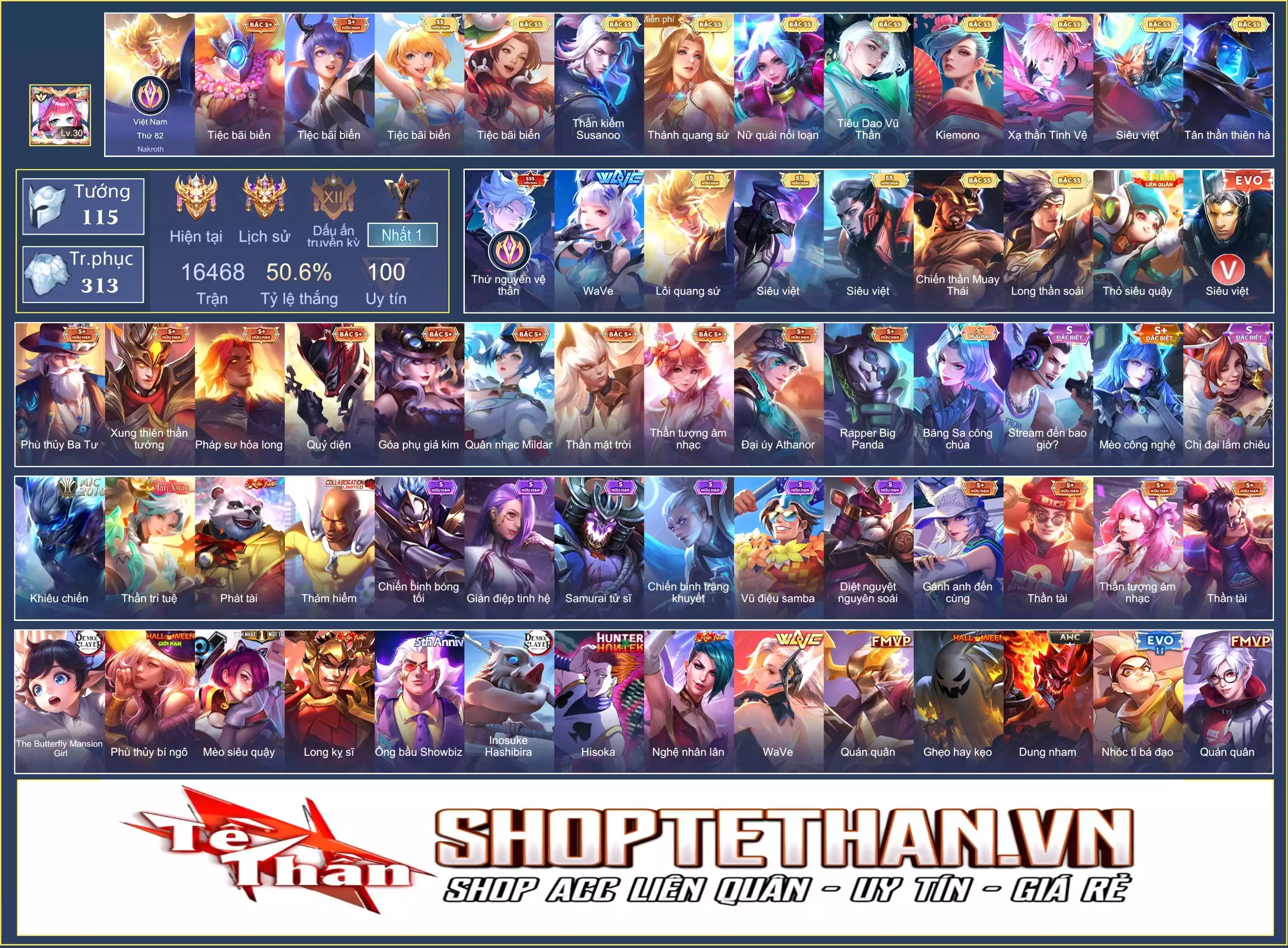 Loại acc | MUA ACC LIÊN QUÂN VIP: SKIN SSS, ANIME, CỤC VÀNG, MÁC THÁCH ĐẤU |
