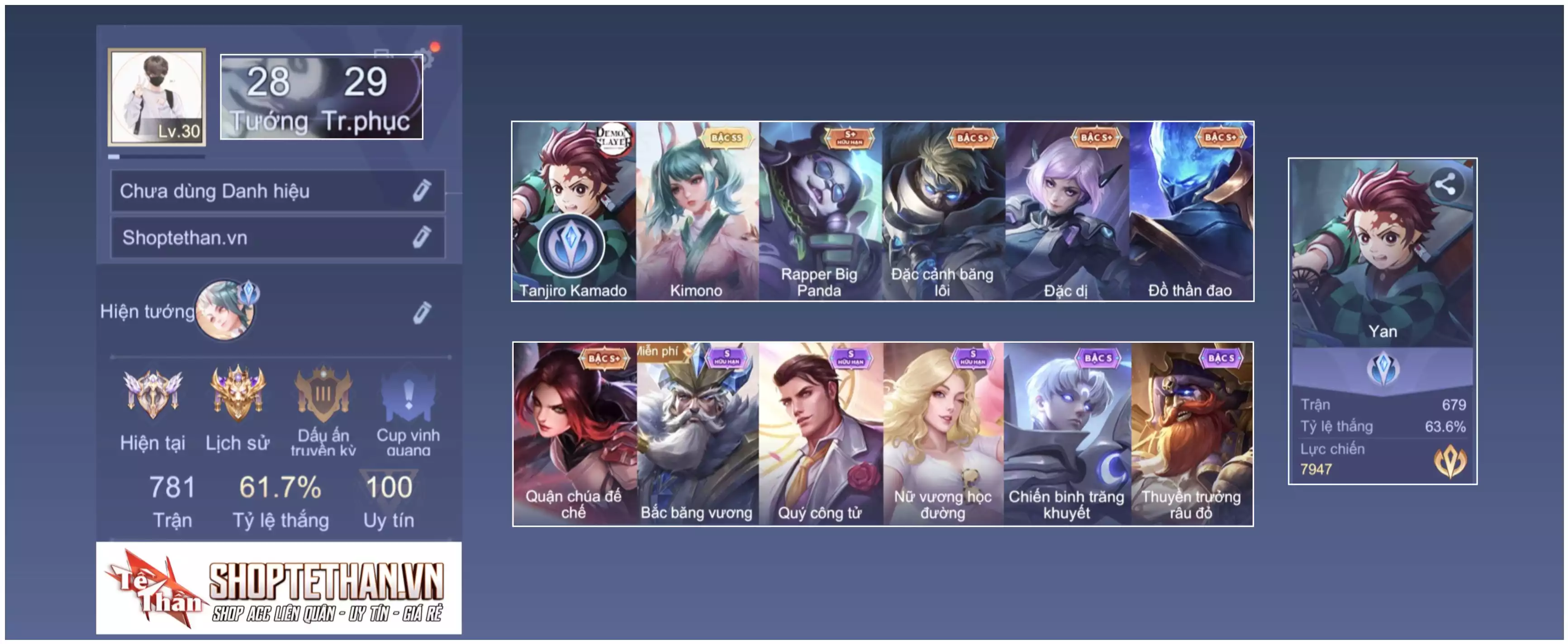 Loại acc | MUA ACC LIÊN QUÂN VIP: SKIN SSS, ANIME, CỤC VÀNG, MÁC THÁCH ĐẤU |