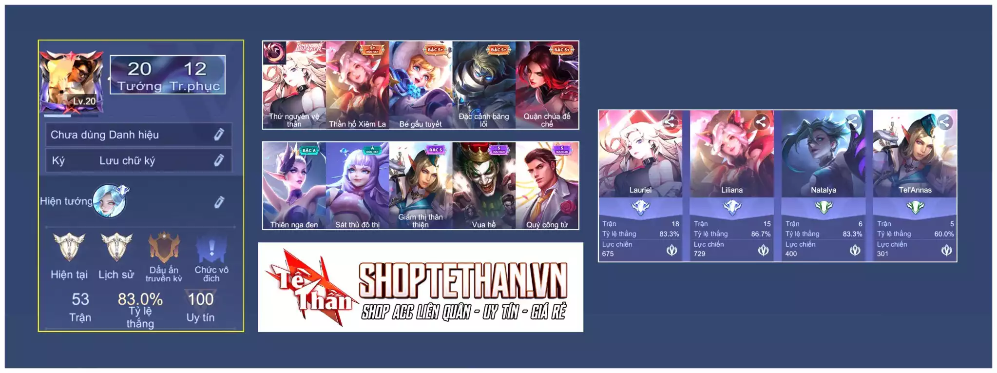 - Các acc trên shop có thông tin khác nhau, anh em khách hàng ấn vào xem acc và kéo xuống bên dưới ảnh có ghi thông tin chính xác của acc đó nha.