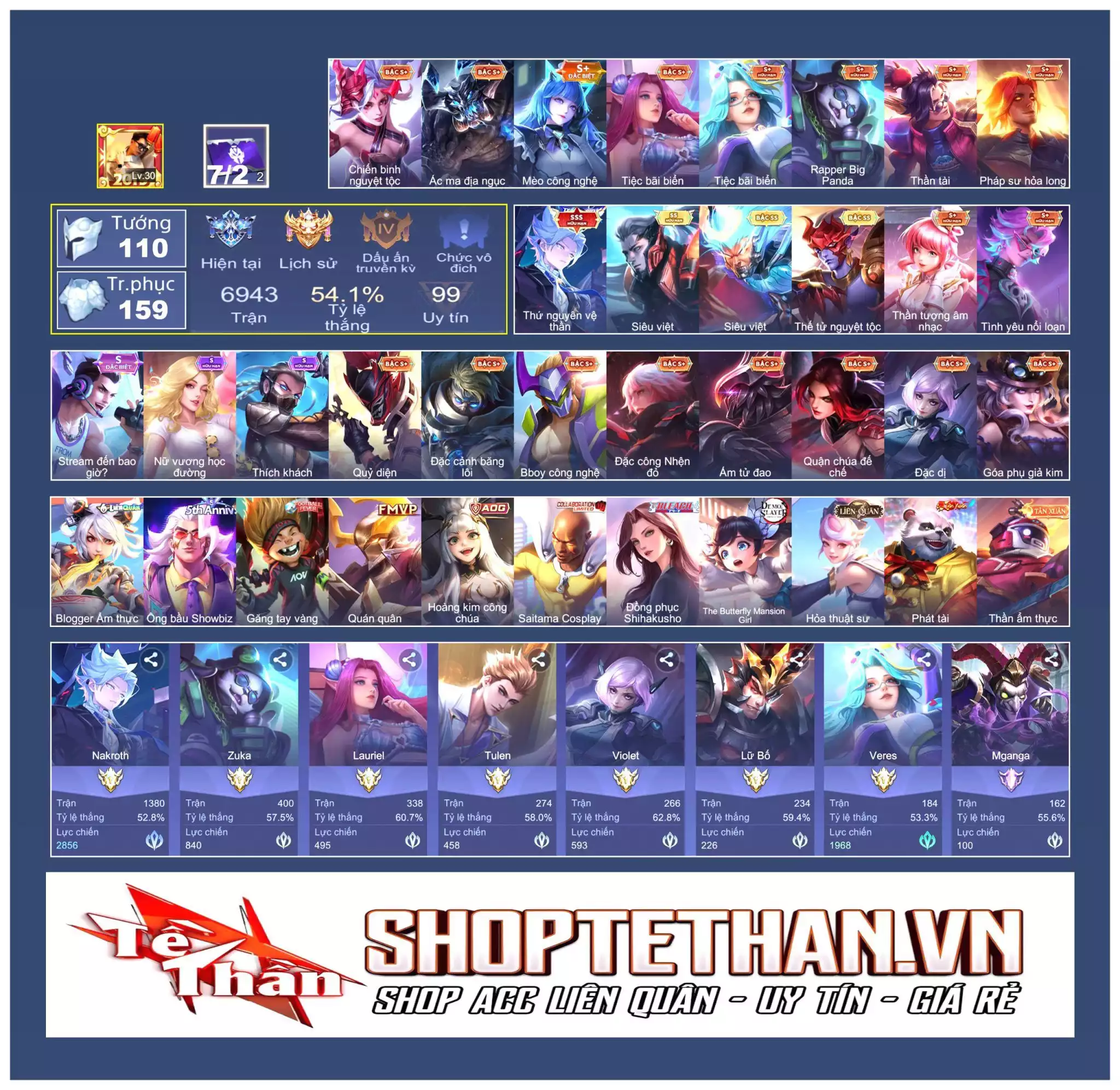 Loại acc | MUA ACC LIÊN QUÂN VIP: SKIN SSS, ANIME, CỤC VÀNG, MÁC THÁCH ĐẤU |