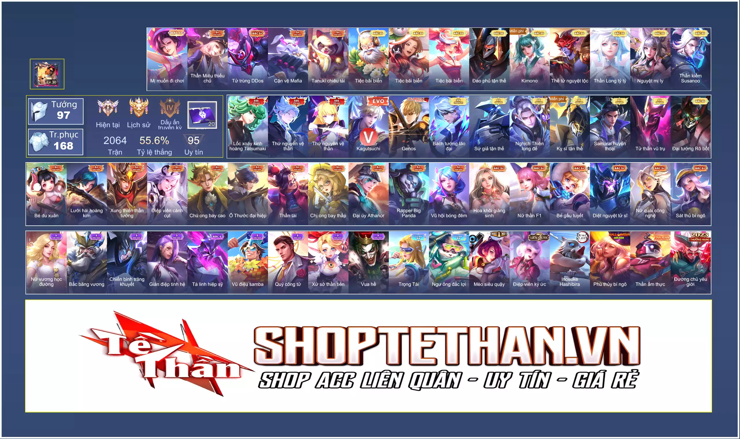 Loại acc | MUA ACC LIÊN QUÂN VIP: SKIN SSS, ANIME, CỤC VÀNG, MÁC THÁCH ĐẤU |