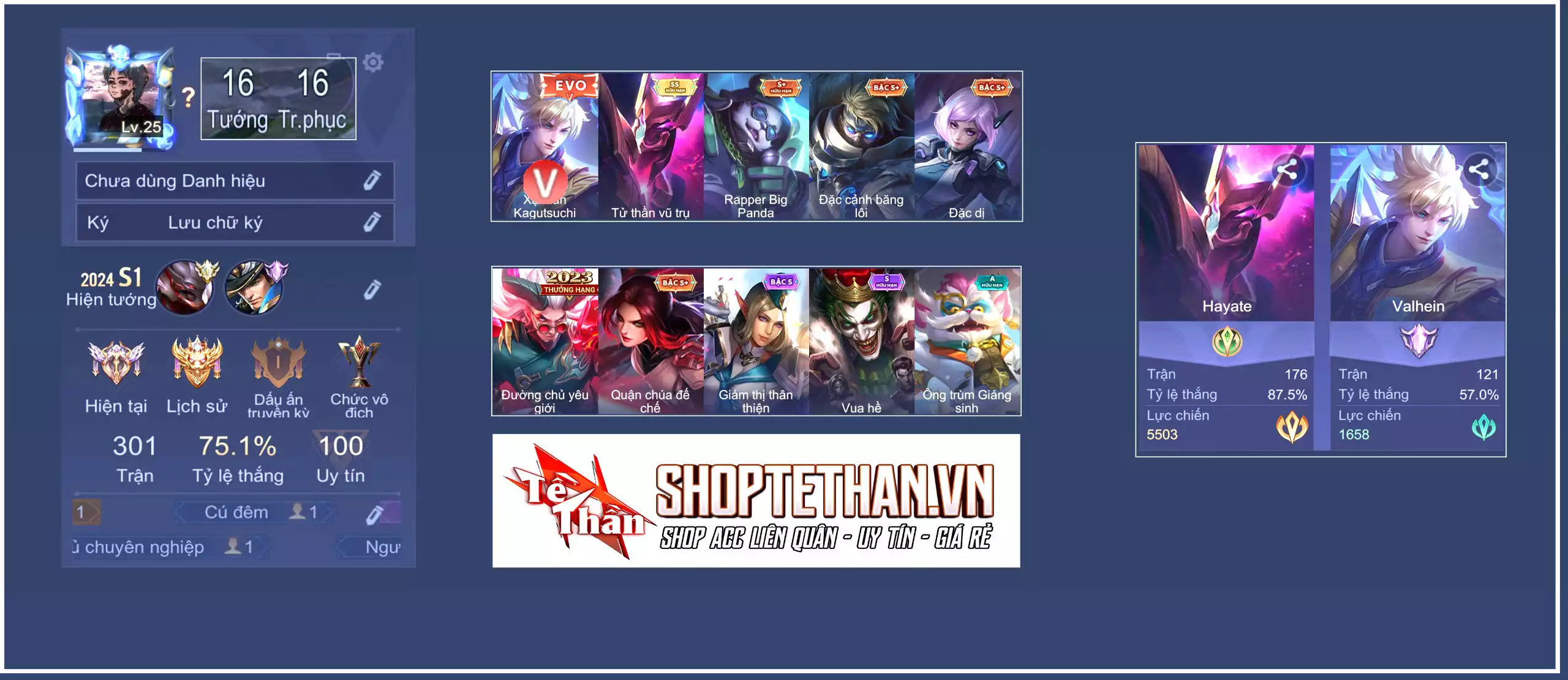 Loại acc MUA ACC LIÊN QUÂN VIP: SKIN SSS, ANIME, CỤC VÀNG, MÁC THÁCH ĐẤU