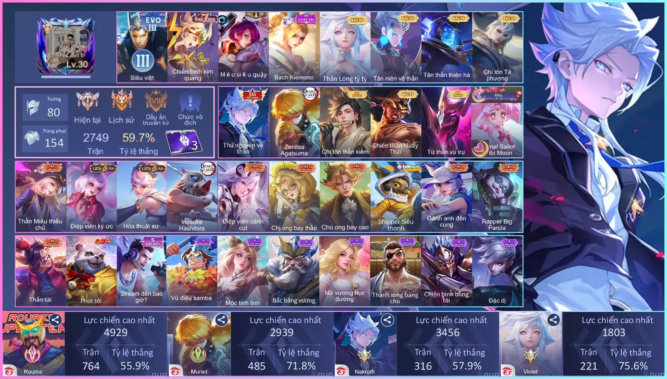 Loại acc | MUA ACC LIÊN QUÂN VIP: SKIN SSS, ANIME, CỤC VÀNG, MÁC THÁCH ĐẤU |