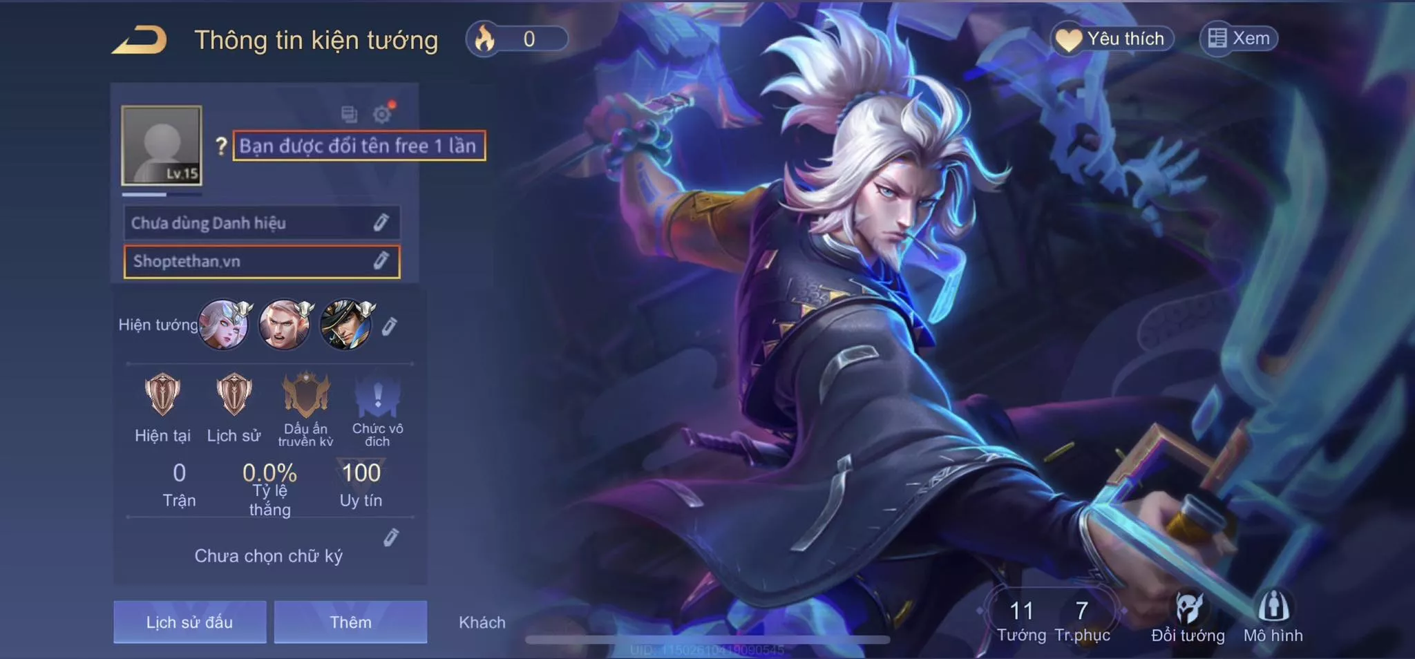 MUA ACC REG TRẮNG THÔNG TIN | NICK LIÊN QUÂN REG (LẺ 1 SKIN)