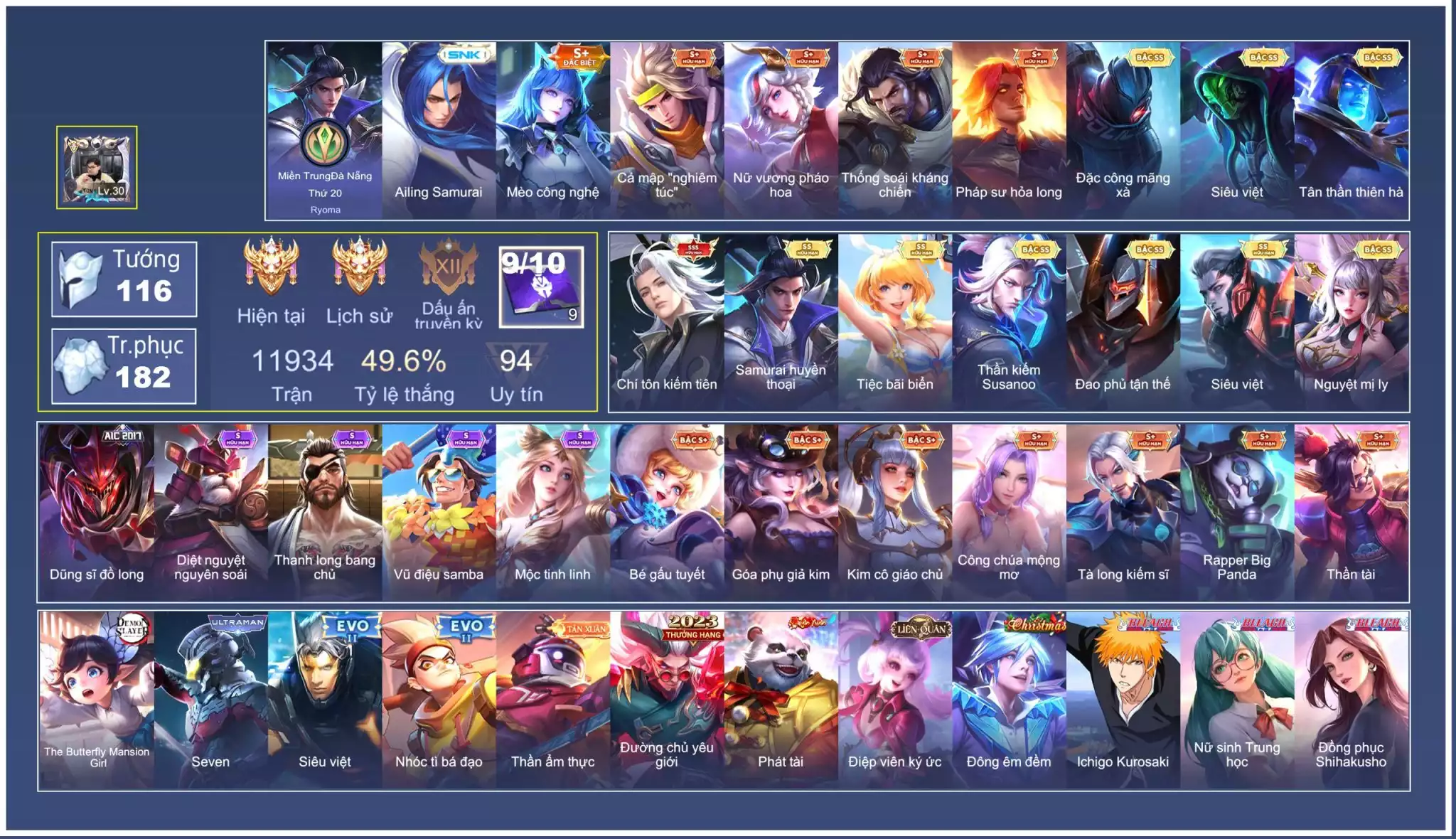 Loại acc | MUA ACC LIÊN QUÂN VIP: SKIN SSS, ANIME, CỤC VÀNG, MÁC THÁCH ĐẤU |
