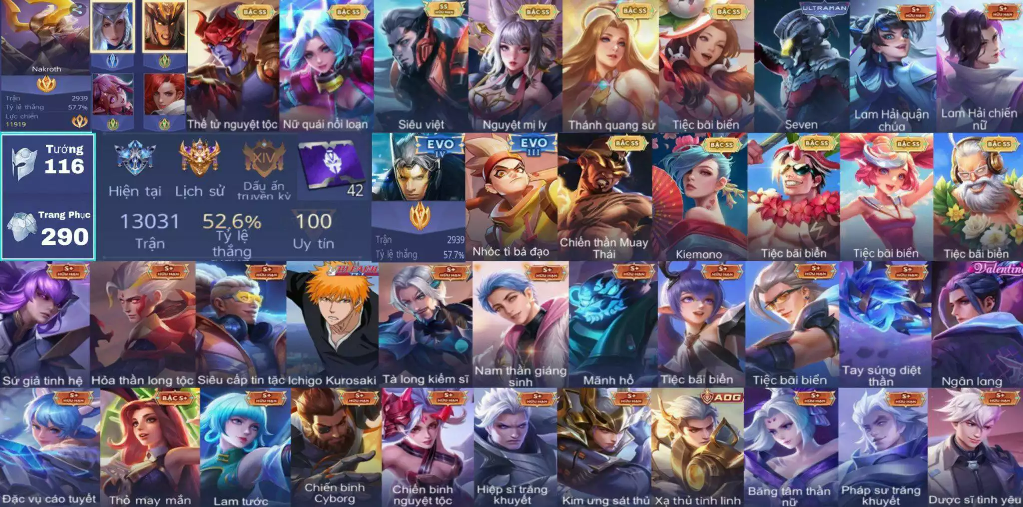 Loại acc | MUA ACC LIÊN QUÂN VIP: SKIN SSS, ANIME, CỤC VÀNG, MÁC THÁCH ĐẤU |