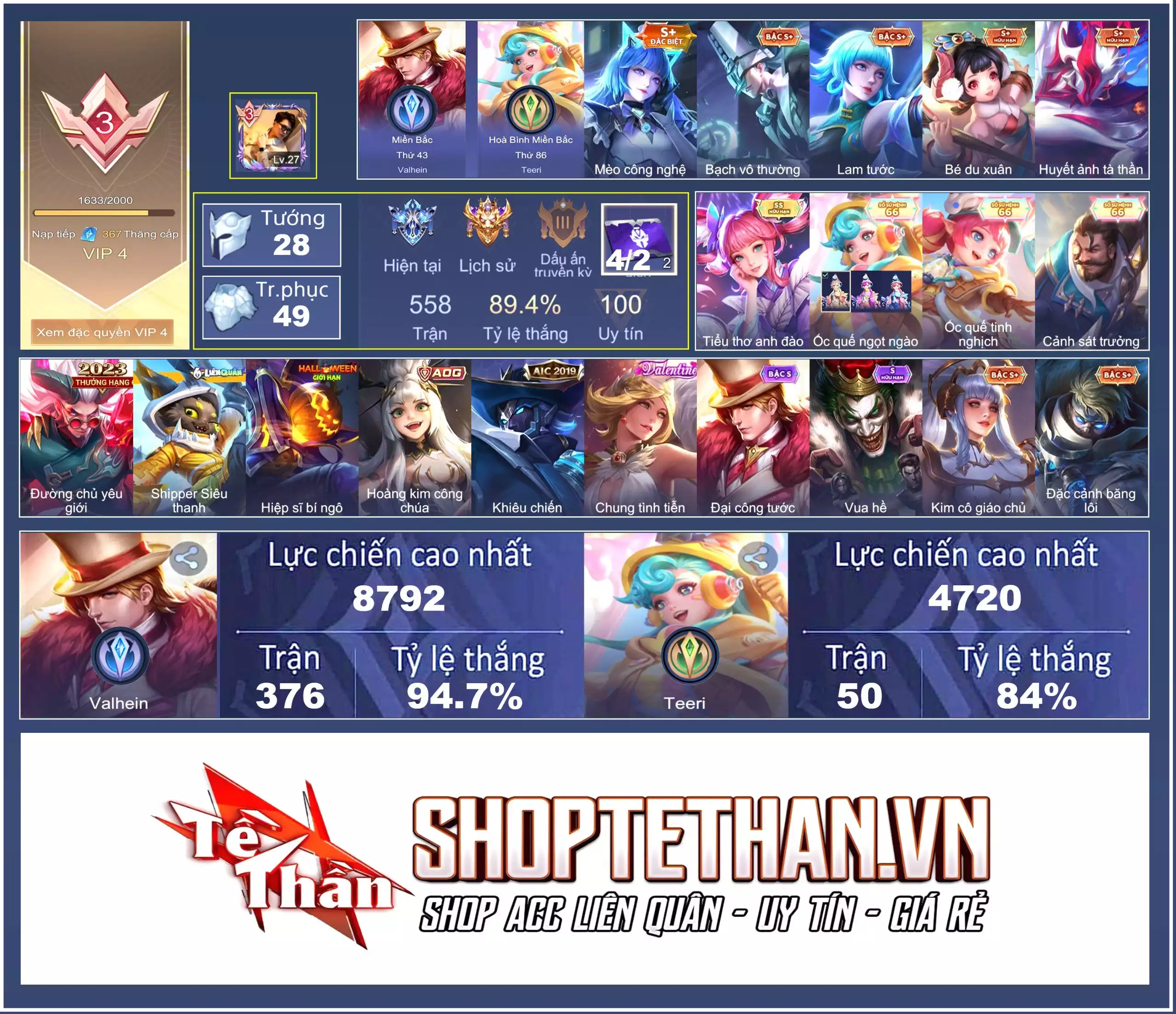 Loại acc MUA ACC LIÊN QUÂN GIÁ RẺ, NHIỀU SKIN S+, SS, SSHH. TỰ ĐỘNG | AN TOÀN | BẢO MẬT | UY TÍN