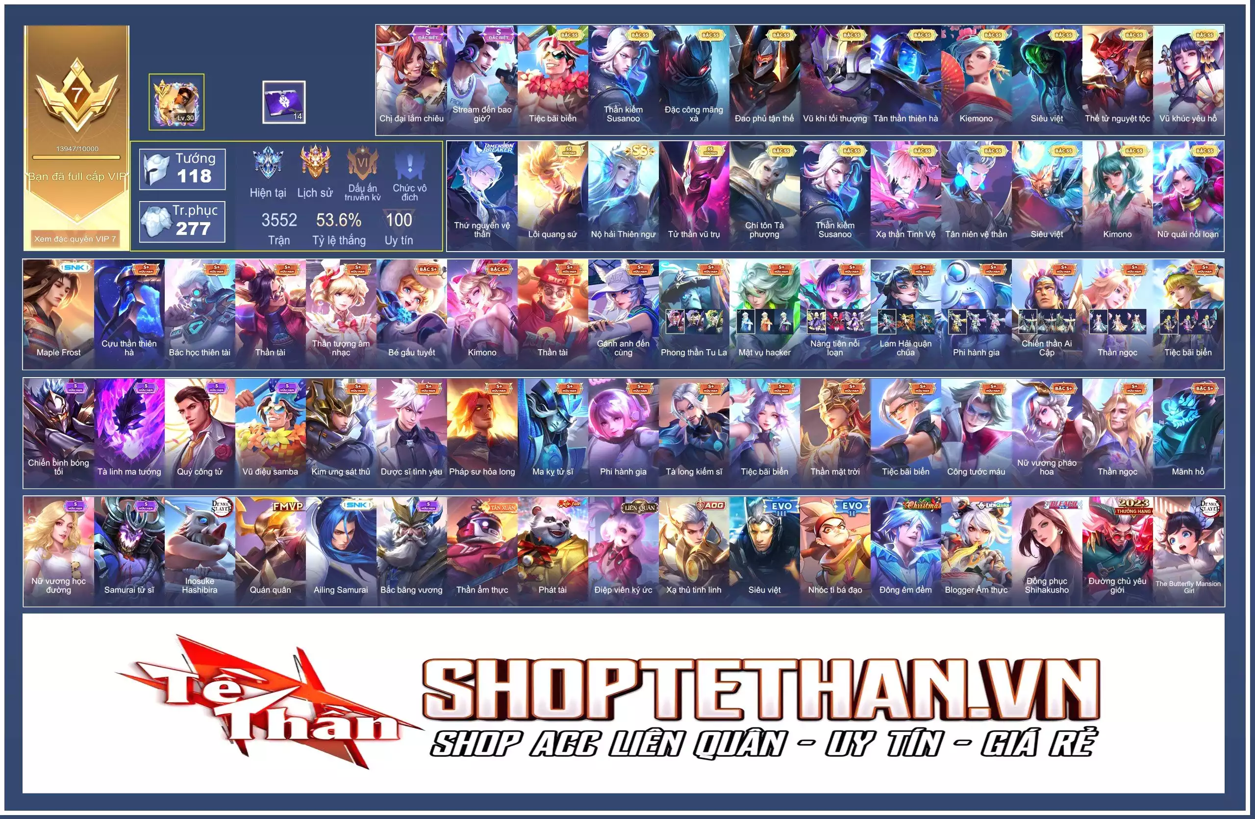 Loại acc | MUA ACC LIÊN QUÂN VIP: SKIN SSS, ANIME, CỤC VÀNG, MÁC THÁCH ĐẤU |