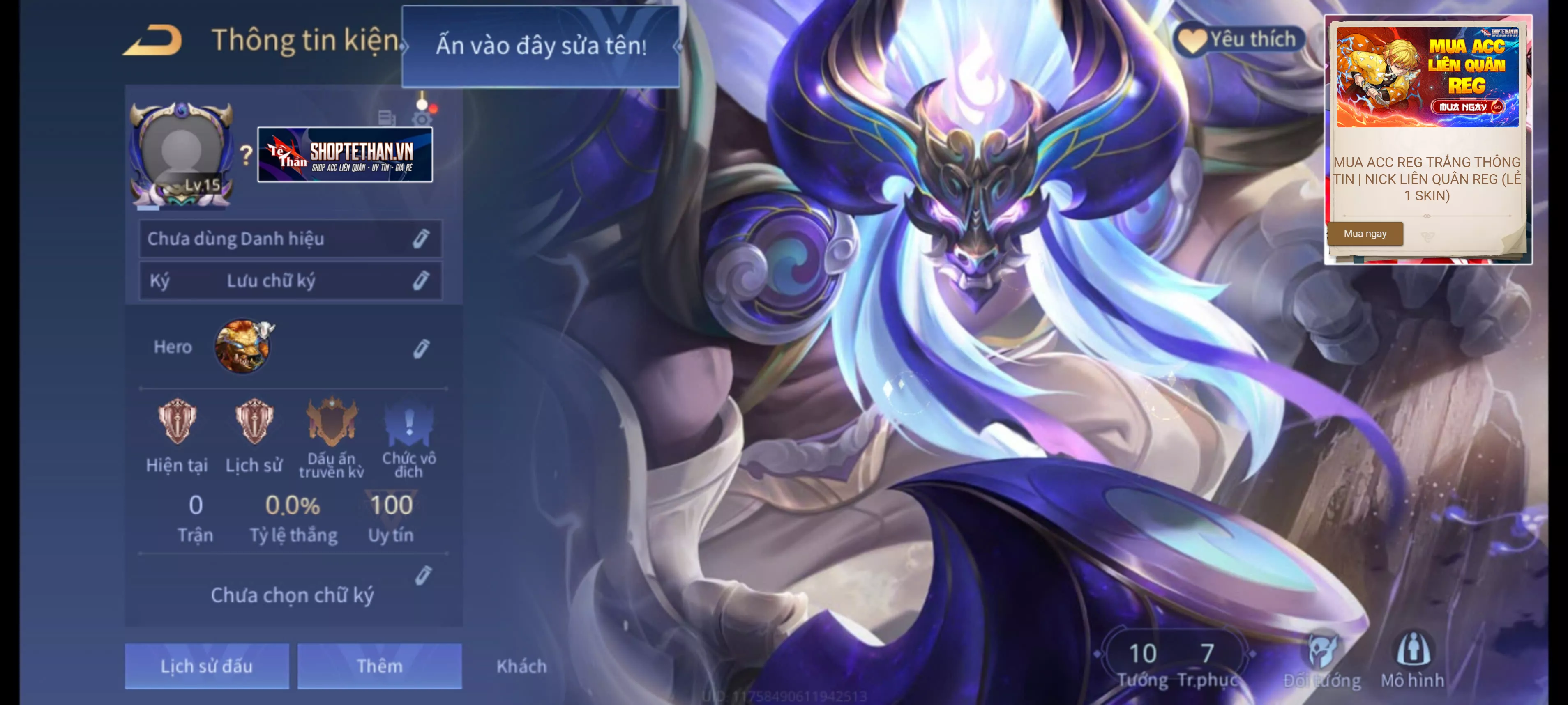 Loại acc MUA ACC REG TRẮNG THÔNG TIN | NICK LIÊN QUÂN REG (LẺ 1 SKIN)