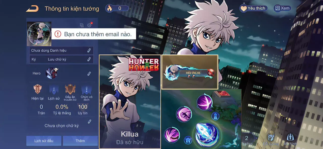 Ảnh (GIẢM GIÁ) ACC REG: Nakroth Killua, có nút bấm + hạ, sẵn tướng, free đổi tên, trắng thông tin