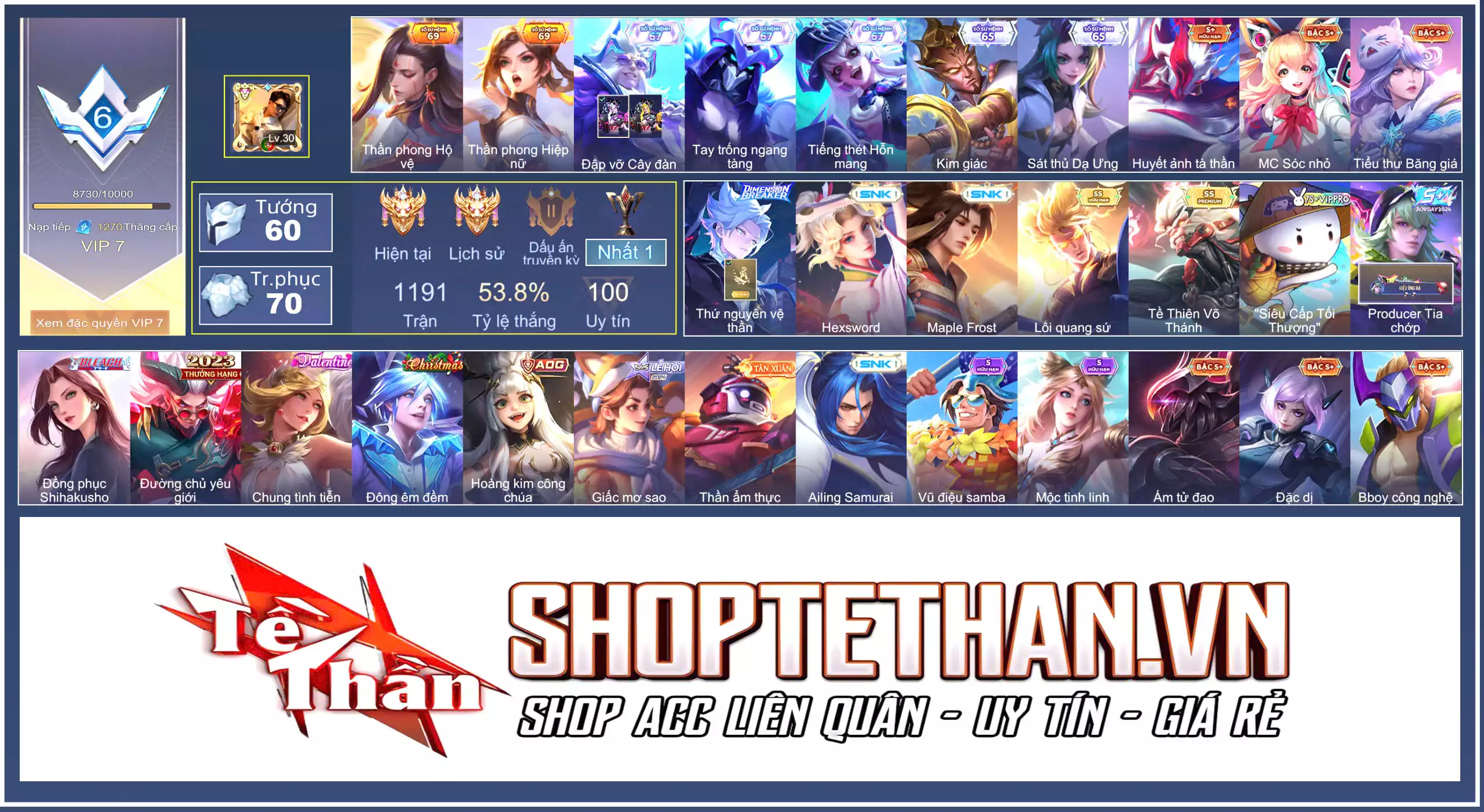 Loại acc | MUA ACC LIÊN QUÂN VIP: SKIN SSS, ANIME, CỤC VÀNG, MÁC THÁCH ĐẤU |