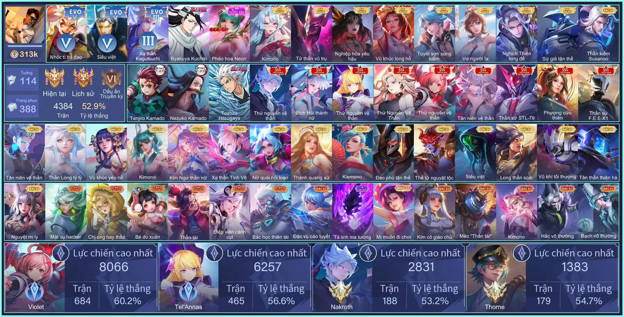 Loại acc MUA ACC LIÊN QUÂN VIP: SKIN SSS, ANIME, CỤC VÀNG, MÁC THÁCH ĐẤU