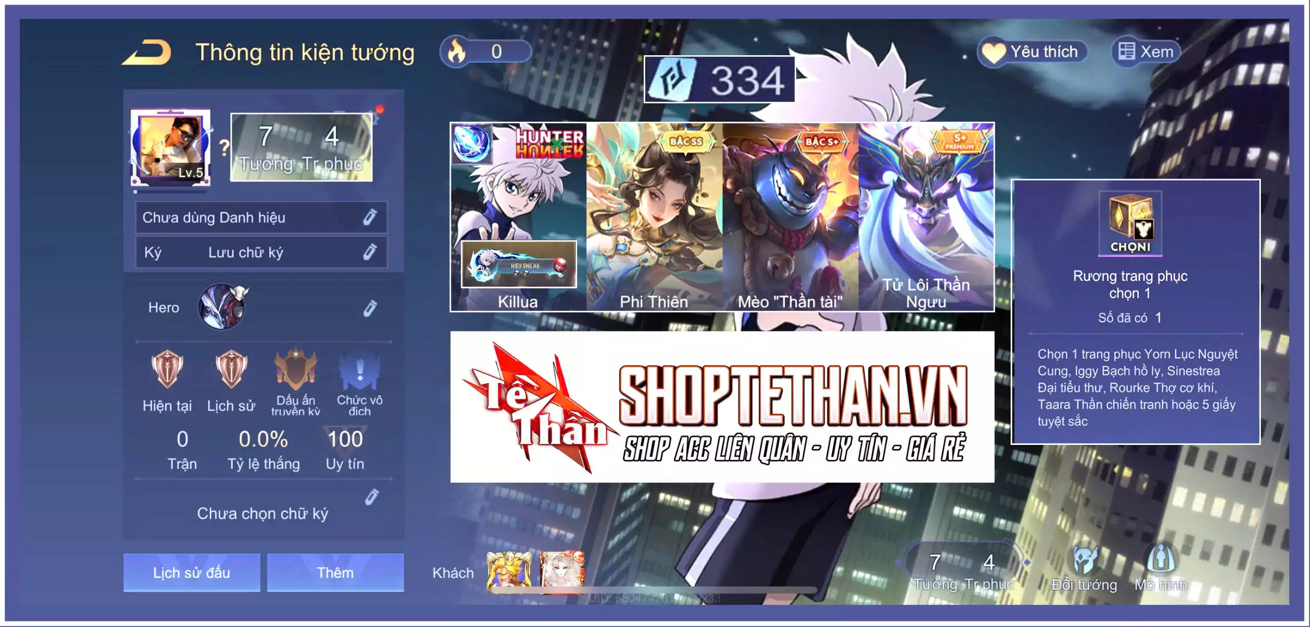 | Loại acc | MUA ACC LIÊN QUÂN REG VIP, TRẮNG THÔNG TIN (NHIỀU SKIN, ANIME, SSS) |