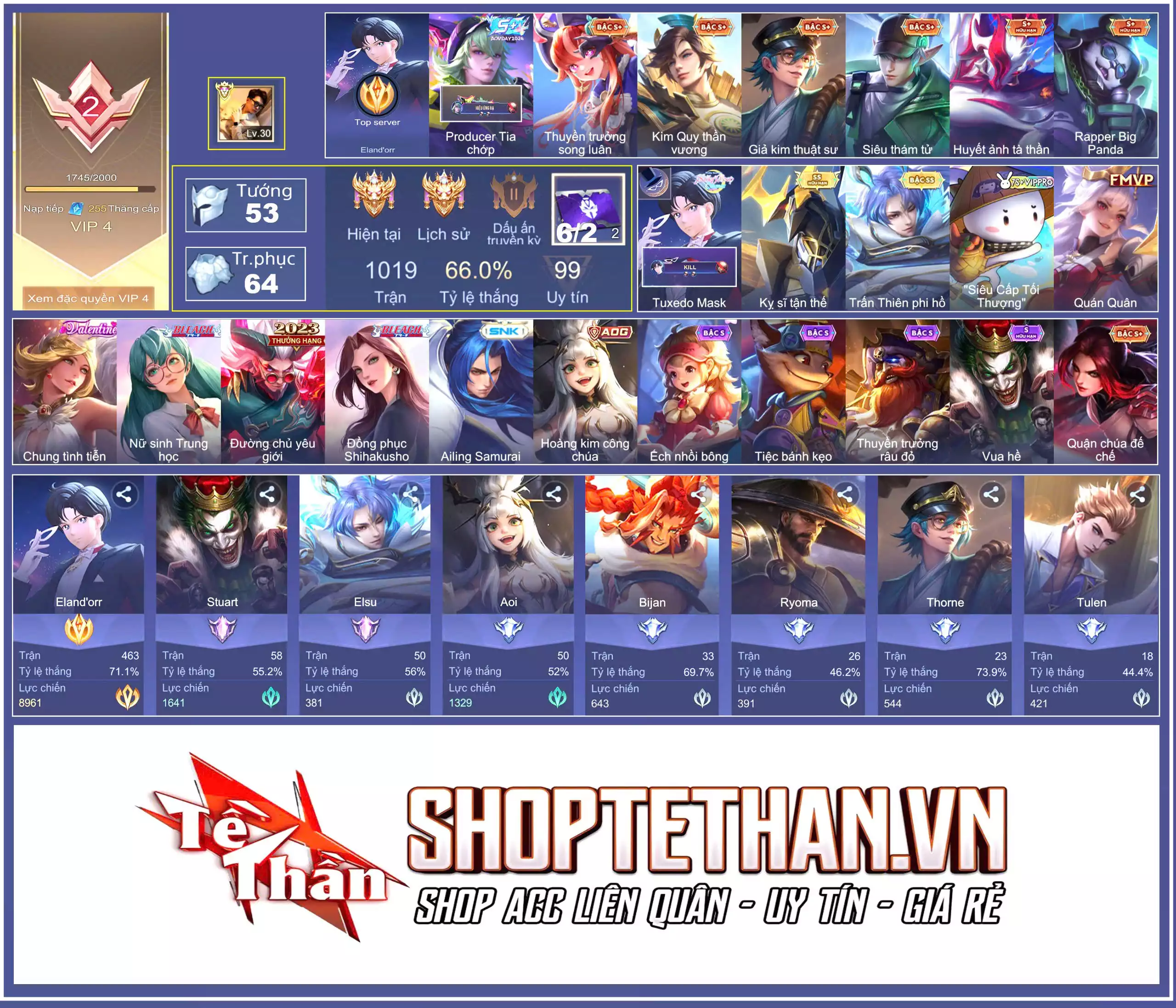| Loại acc | MUA ACC LIÊN QUÂN VIP: SKIN SSS, ANIME, CỤC VÀNG, MÁC THÁCH ĐẤU |