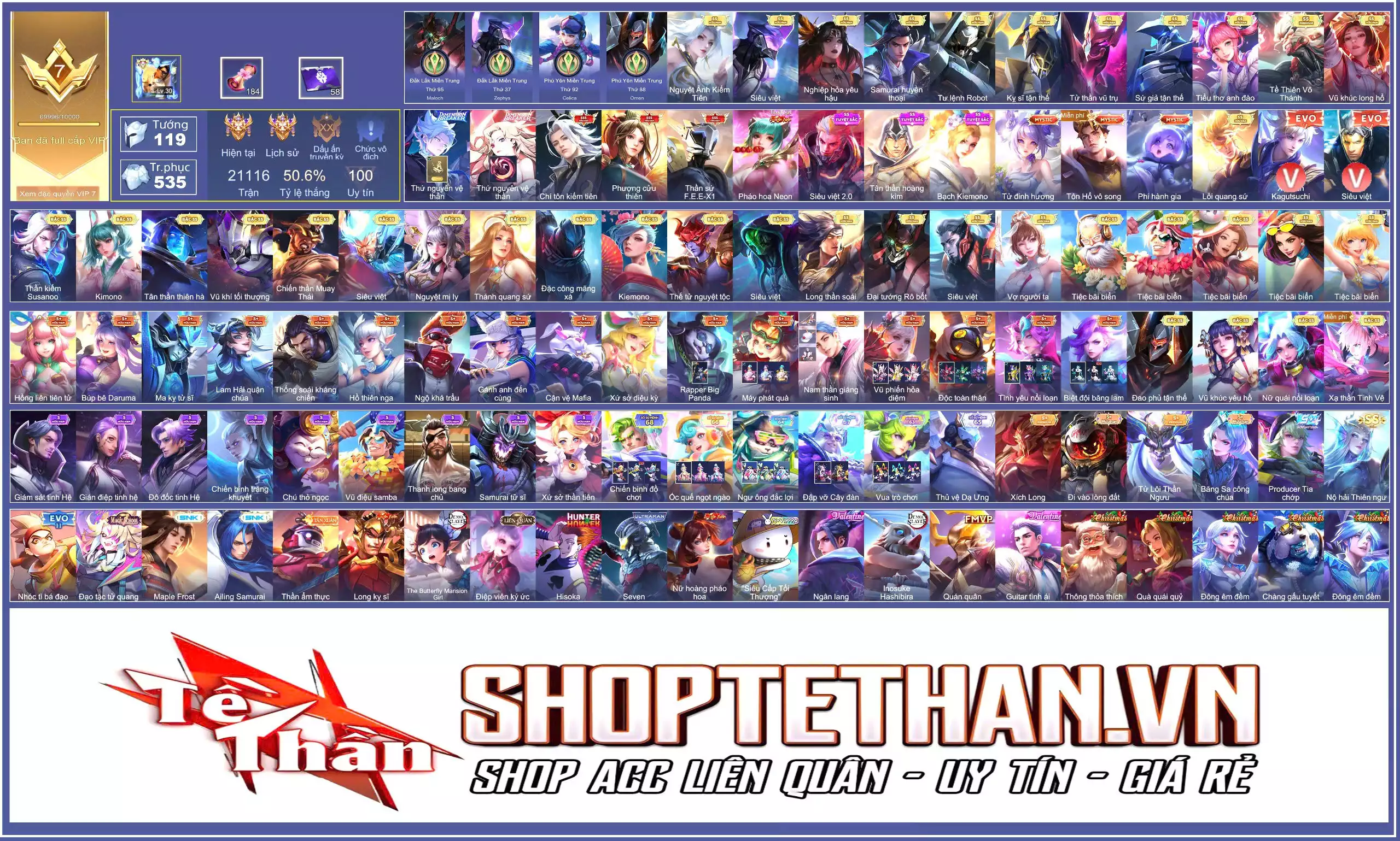 Loại acc | MUA ACC LIÊN QUÂN VIP: SKIN SSS, ANIME, CỤC VÀNG, MÁC THÁCH ĐẤU |