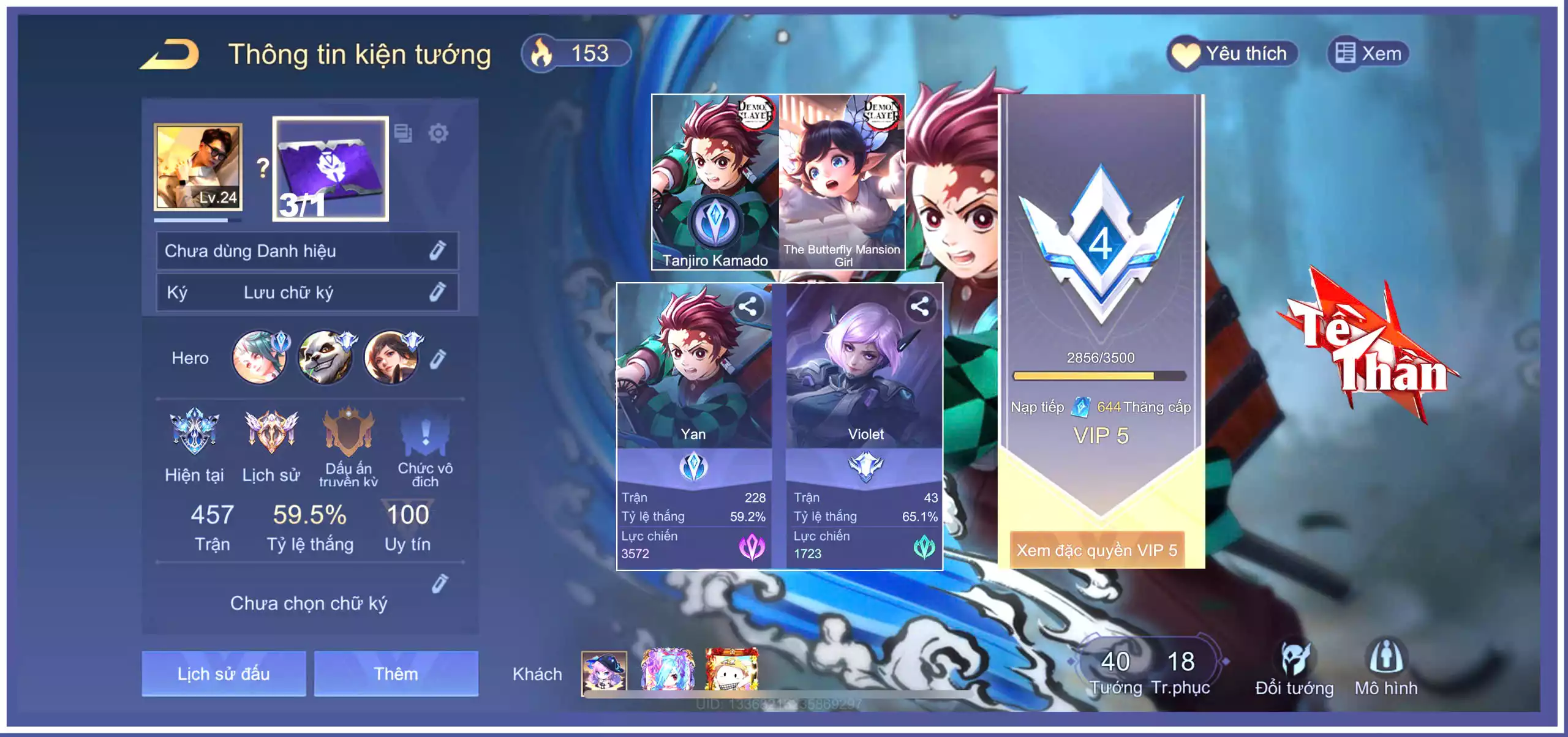 | Loại acc | MUA ACC LIÊN QUÂN VIP: SKIN SSS, ANIME, CỤC VÀNG, MÁC THÁCH ĐẤU |
