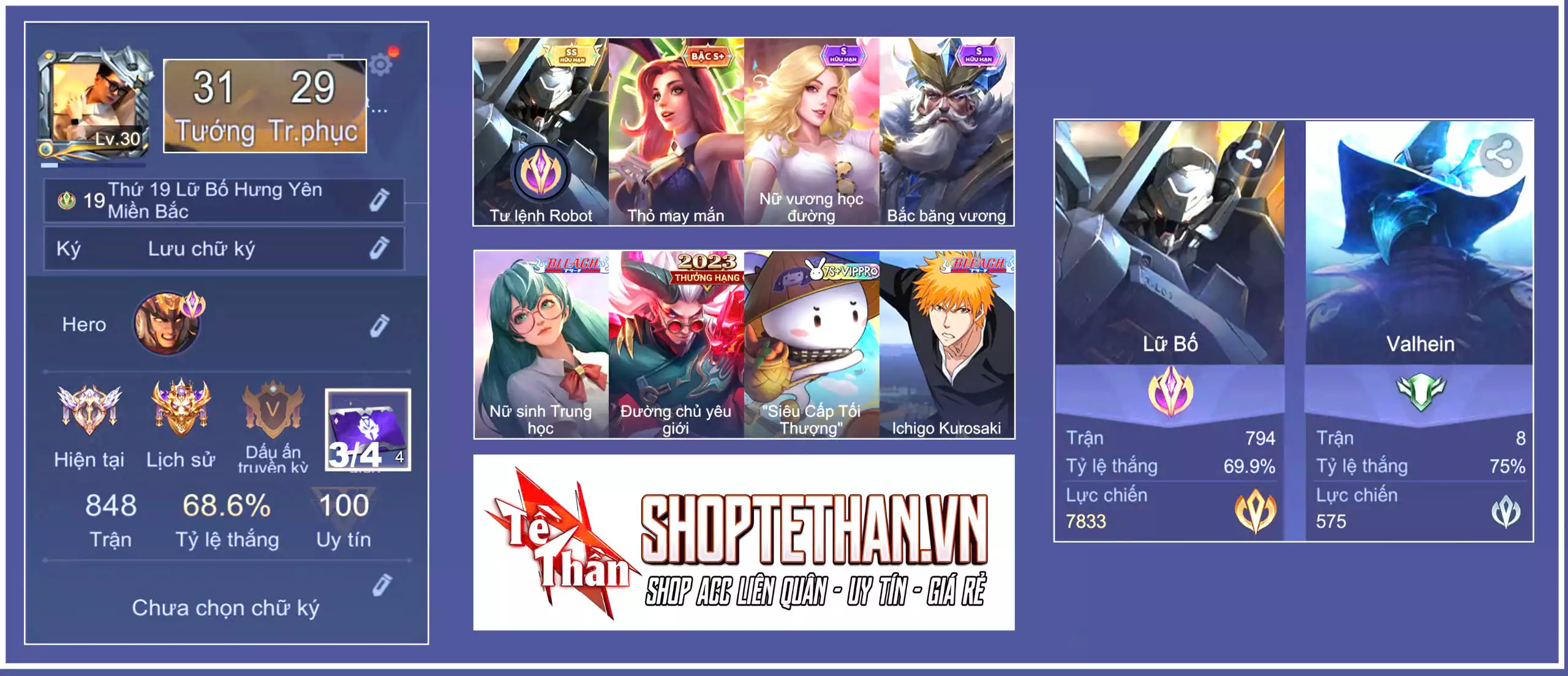 MUA ACC LIÊN QUÂN GIÁ RẺ, NHIỀU SKIN S+, SS, SSHH. TỰ ĐỘNG | AN TOÀN | BẢO MẬT | UY TÍN