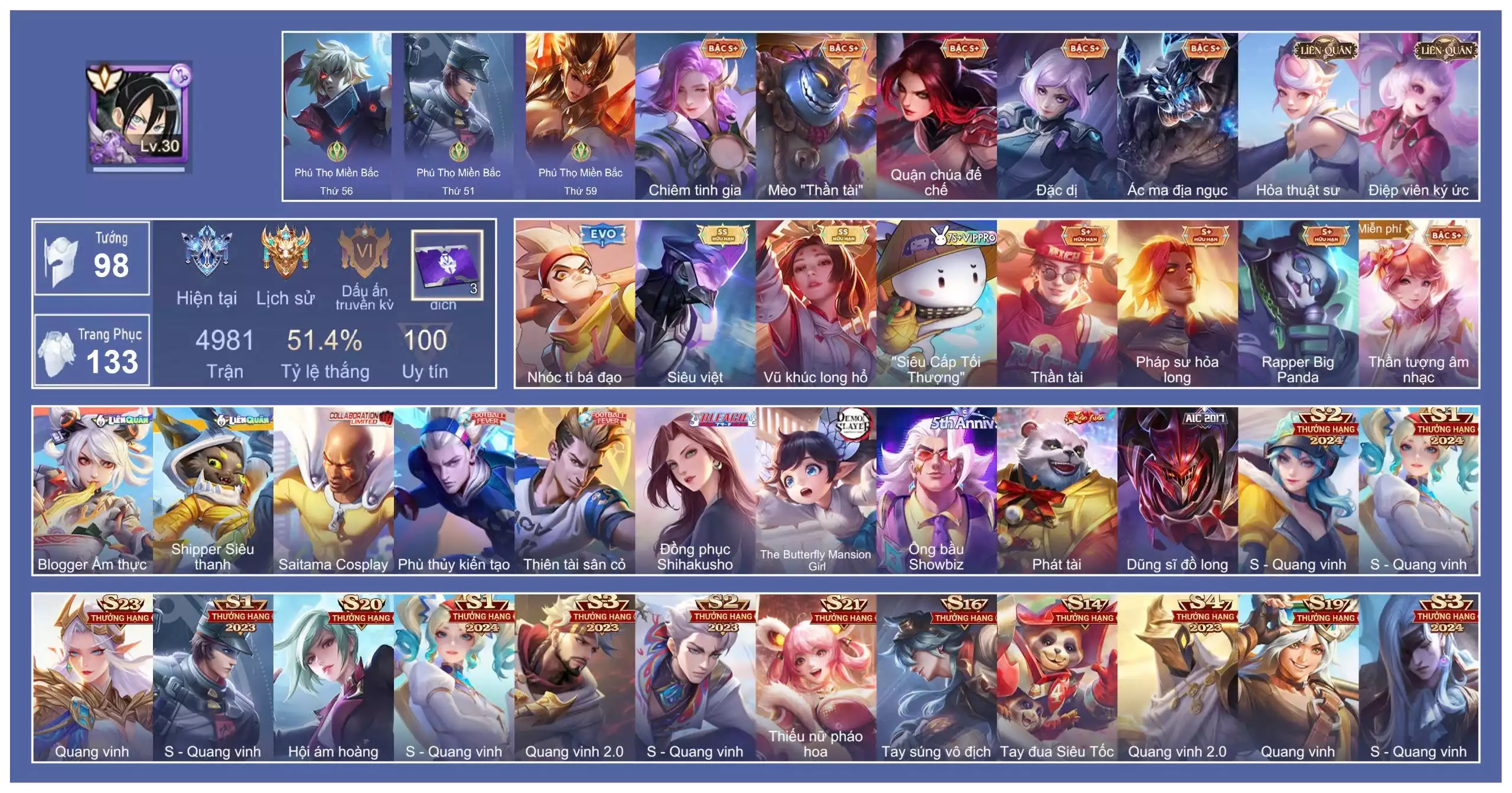 | Loại acc | MUA ACC LIÊN QUÂN GIÁ RẺ, NHIỀU SKIN S+, SS, SSHH. TỰ ĐỘNG | AN TOÀN | BẢO MẬT | UY TÍN |