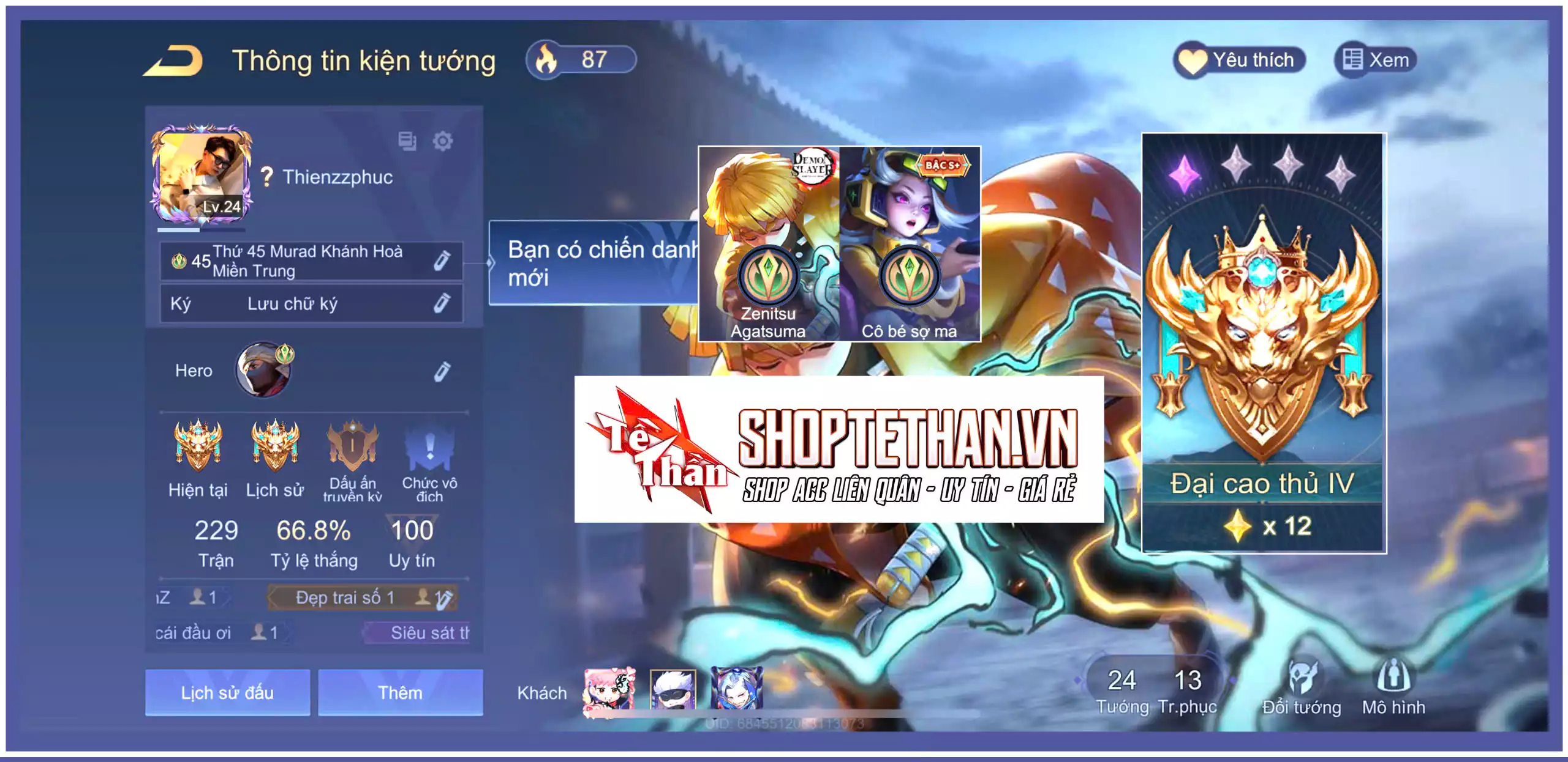 Loại acc | MUA ACC LIÊN QUÂN VIP: SKIN SSS, ANIME, CỤC VÀNG, MÁC THÁCH ĐẤU |