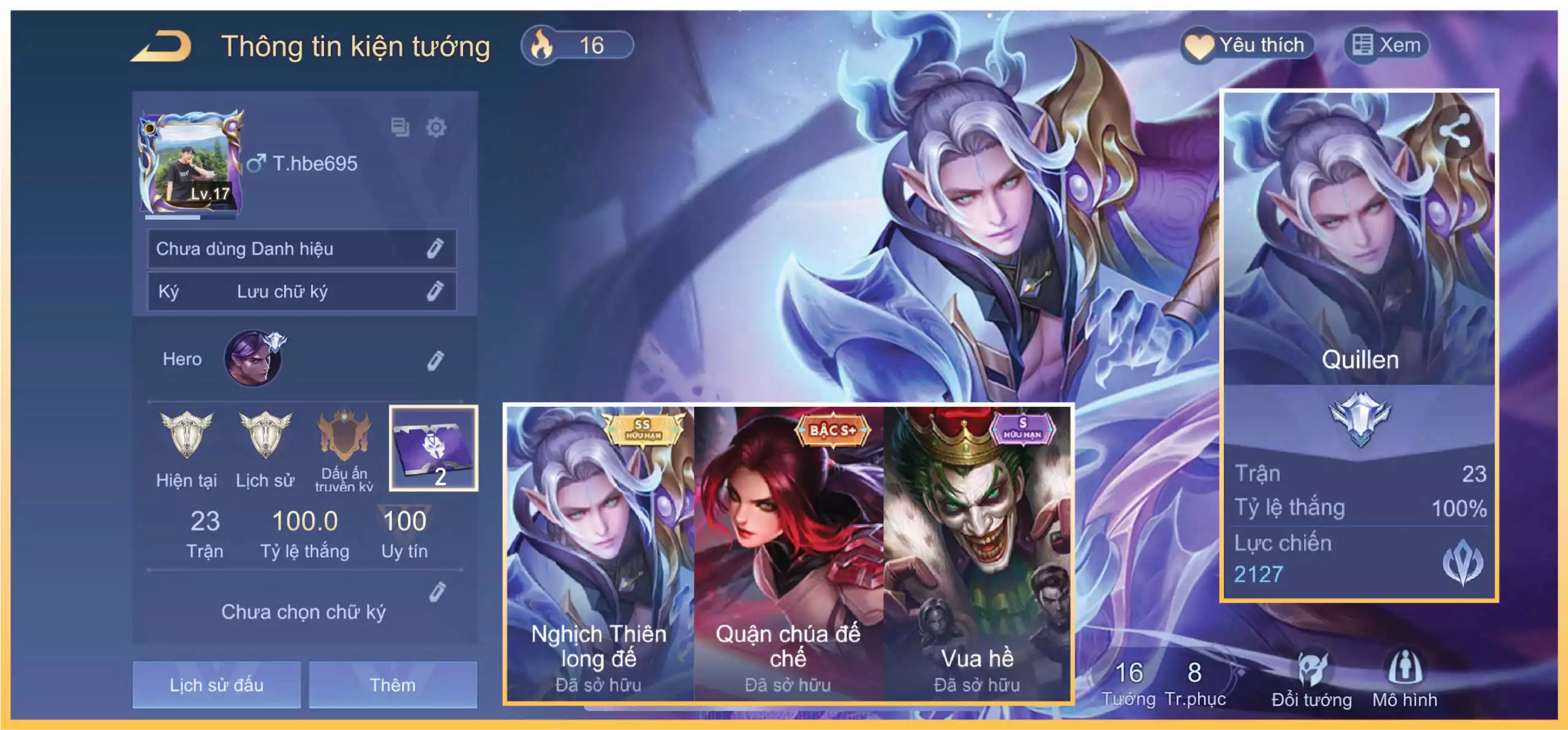 Acc #45932: Quillen nghịch thiên long đế ... Trắng Thông Tin, KLK, giá 300,000 đ