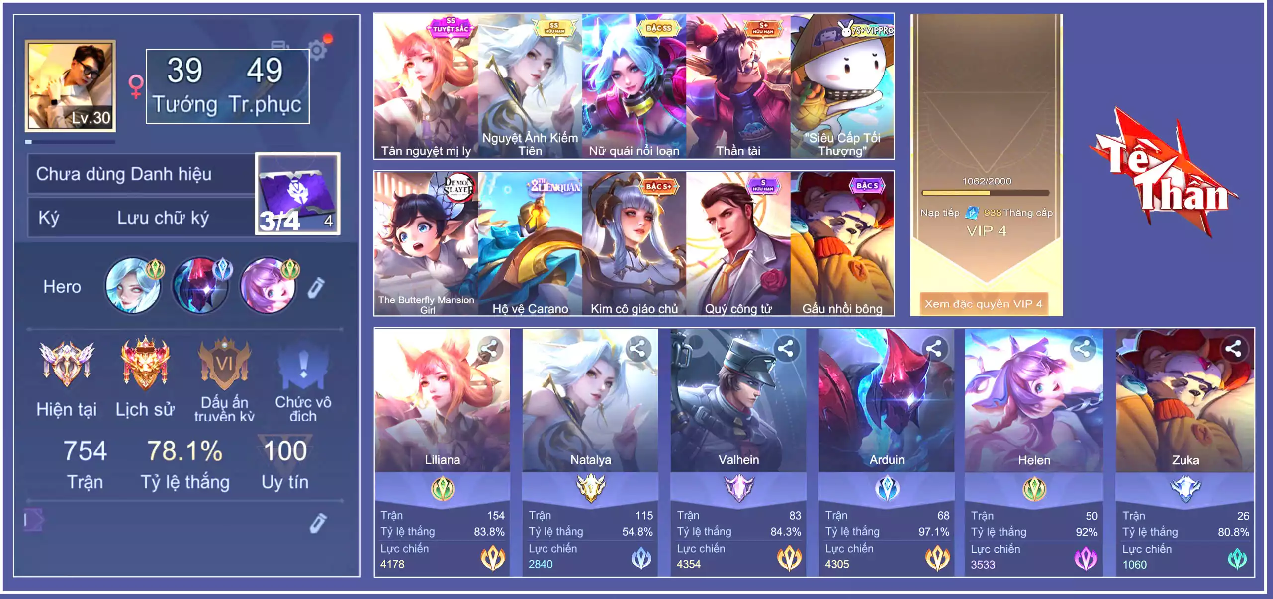 Loại acc | MUA ACC LIÊN QUÂN VIP: SKIN SSS, ANIME, CỤC VÀNG, MÁC THÁCH ĐẤU |