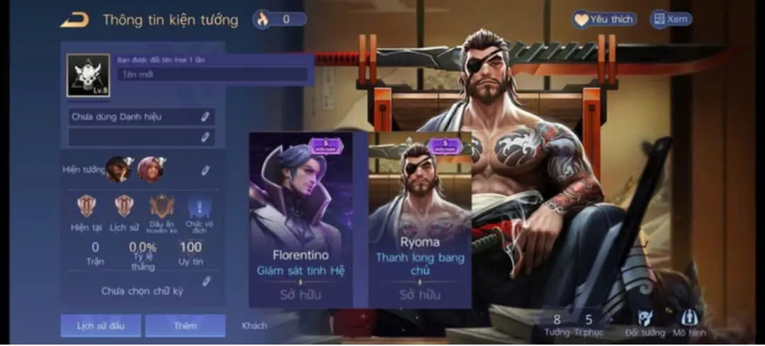 ACC REG: Flo tinh hệ, Ryoma thanh long ban chủ, sẵn tướng, free thẻ đổi tên, trắng thông tin