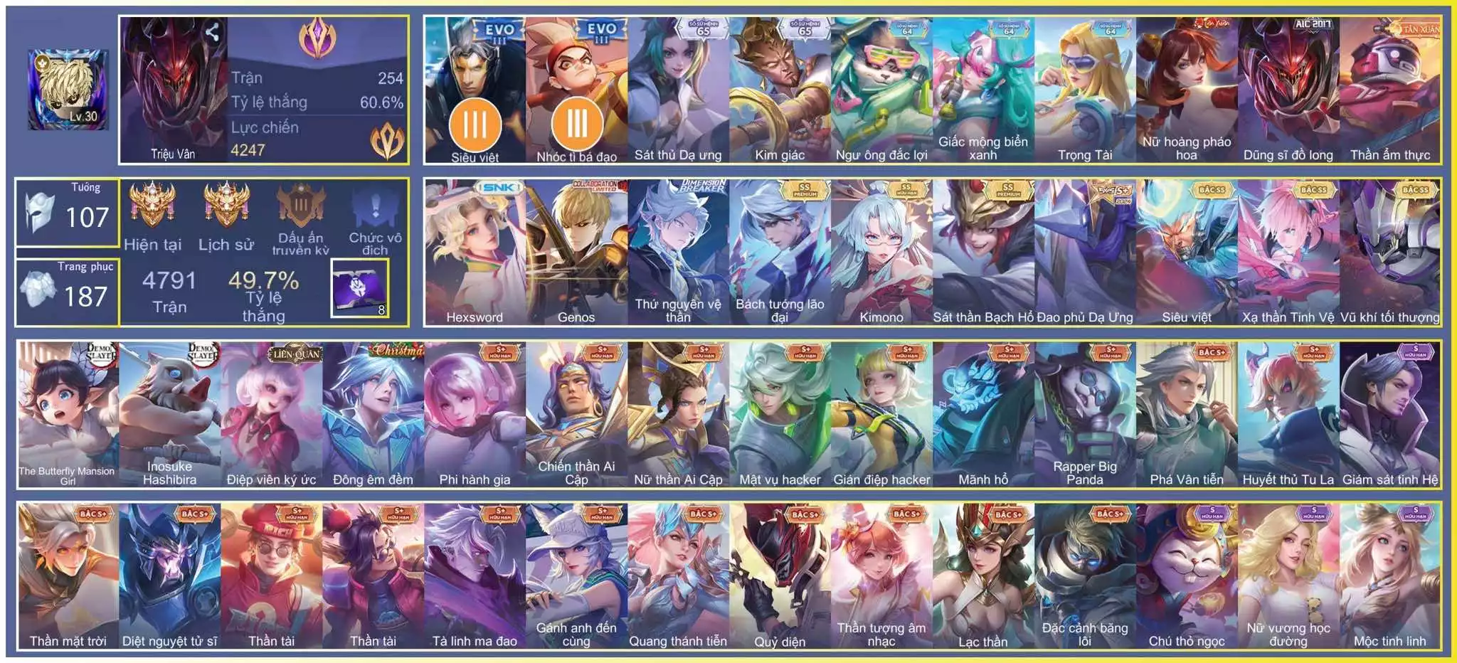 Acc #46890: TOP VN: Triệu vân, Nak vệ thần, Enzo bạch hổ..., giá 3,200,000 đ