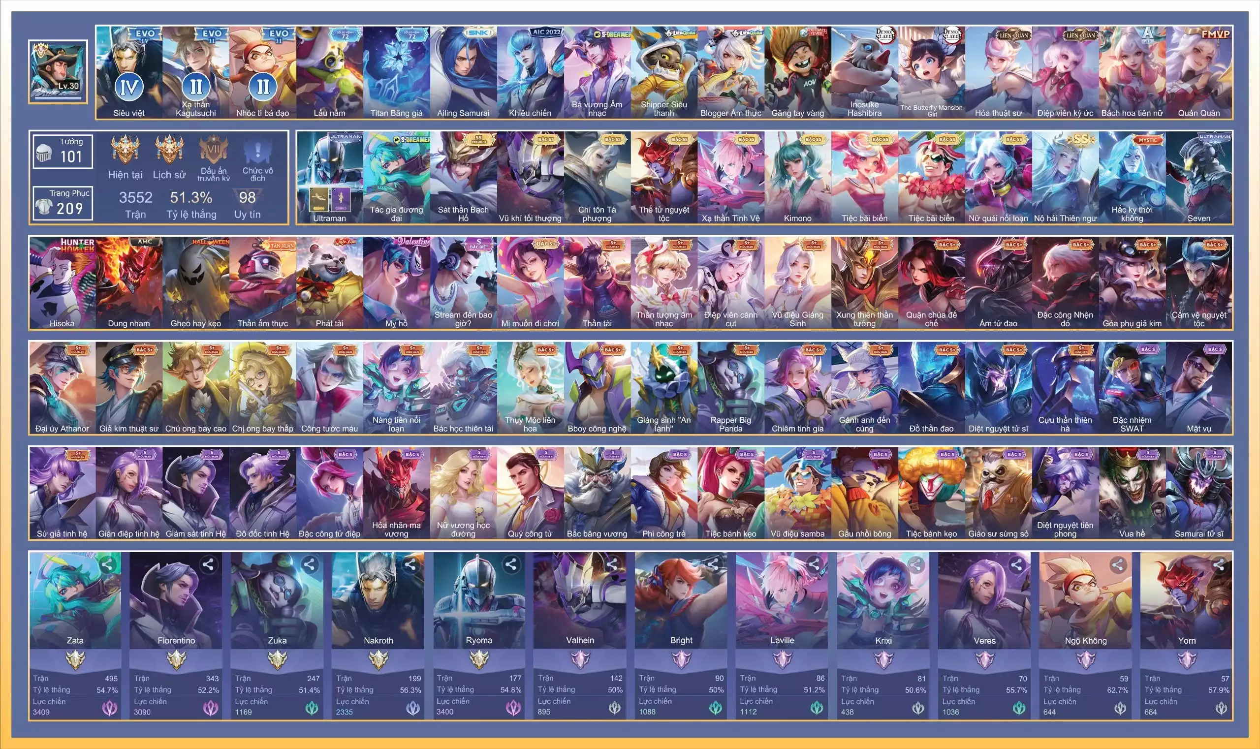 Loại acc | MUA ACC LIÊN QUÂN VIP: SKIN SSS, ANIME, CỤC VÀNG, MÁC THÁCH ĐẤU |