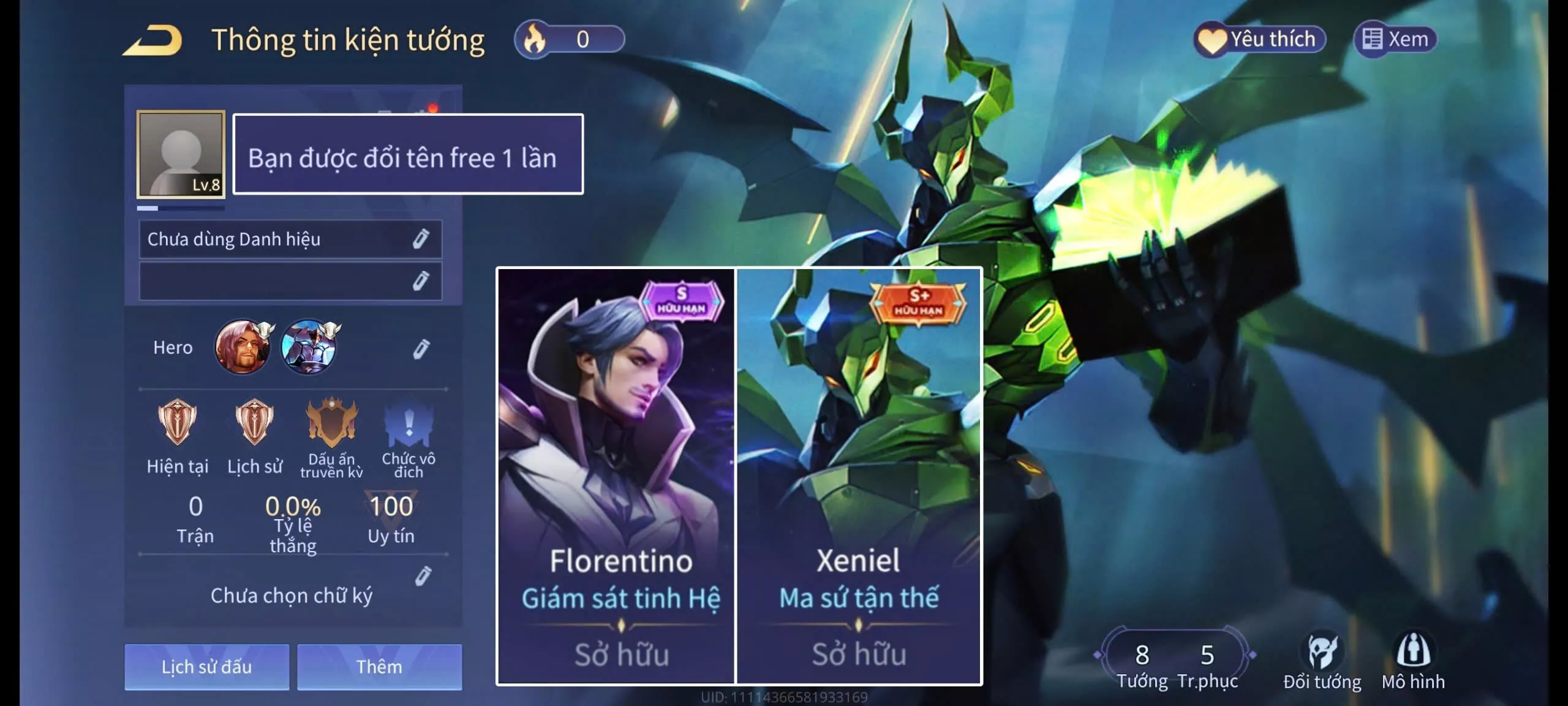 ACC REG: Florentino giám sát tinh hệ, Xinel ma sứ tận thế… sẵn tướng, free đổi tên, trắng thông tin