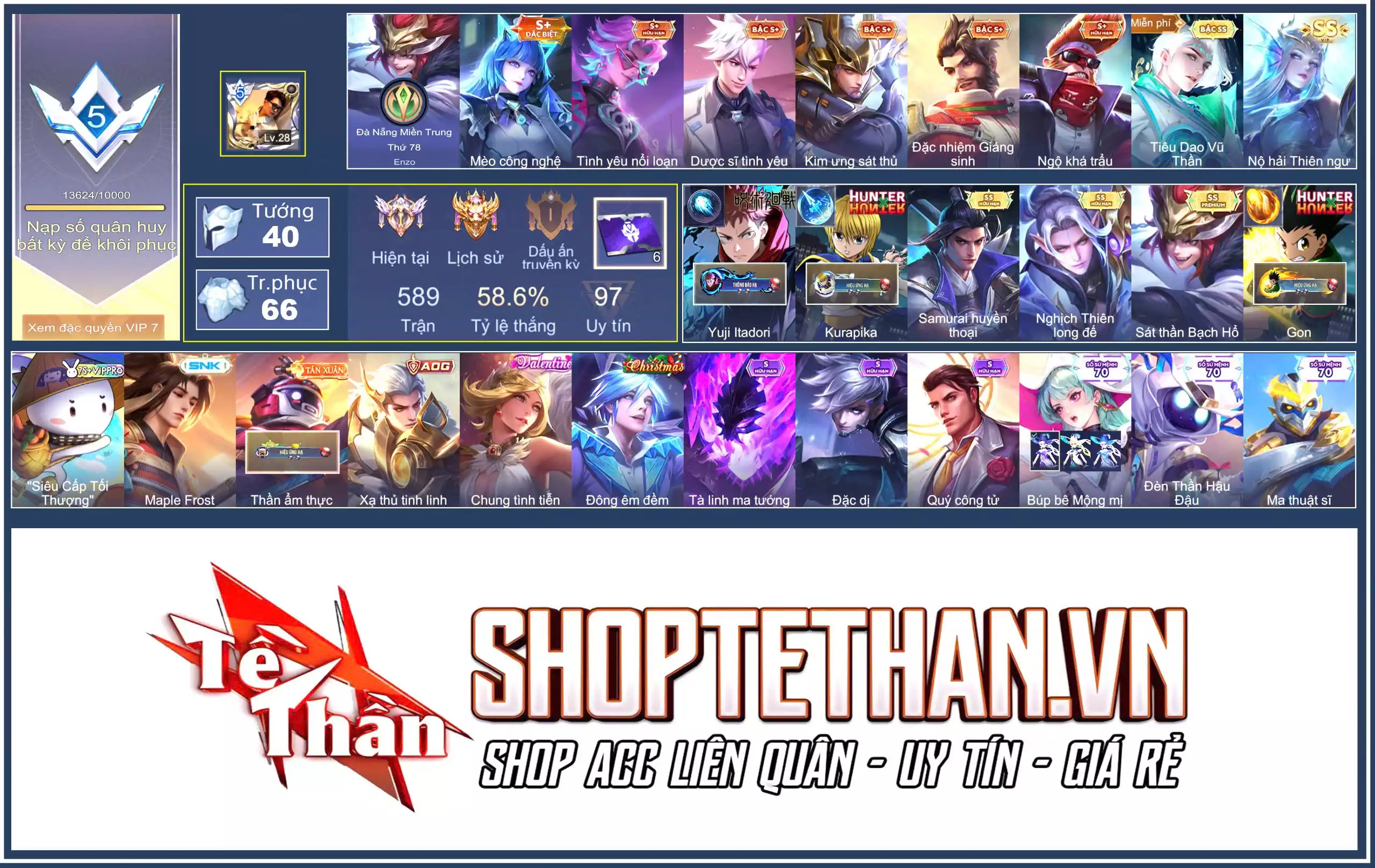 Loại acc | MUA ACC LIÊN QUÂN VIP: SKIN SSS, ANIME, CỤC VÀNG, MÁC THÁCH ĐẤU |
