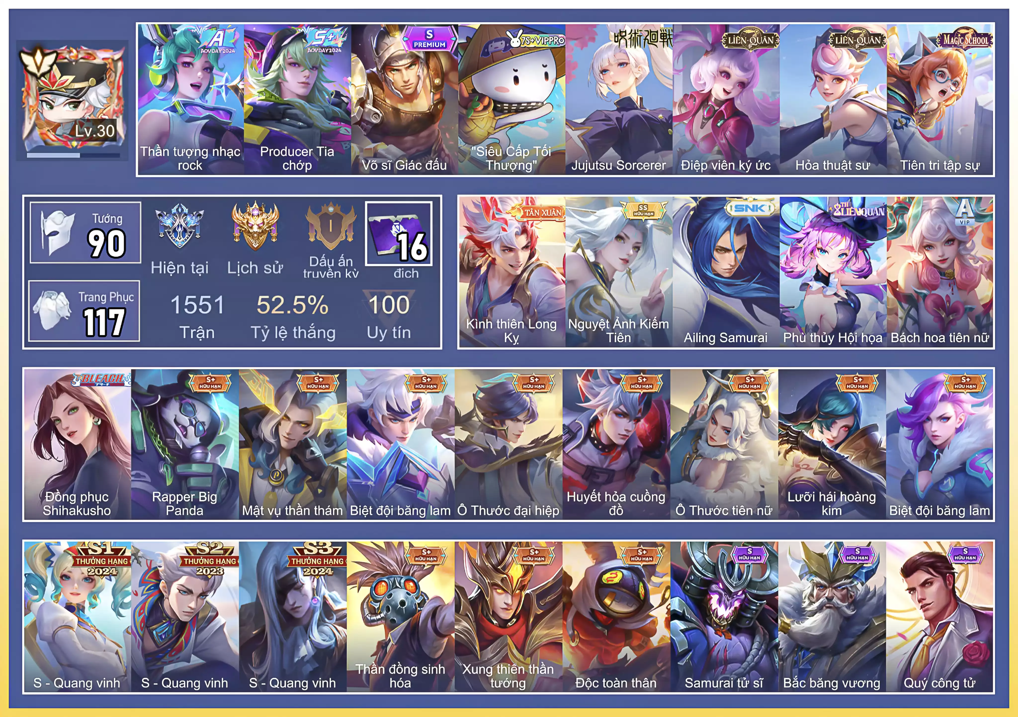 Biron Võ Sĩ Giác đấu|CÁC SKIN SS: |CÁC SKIN SSS: Bijan Kình Thiên Long Kỵ|CÁC SKIN ANIME: Lindis Đồng Phục Shihakusho