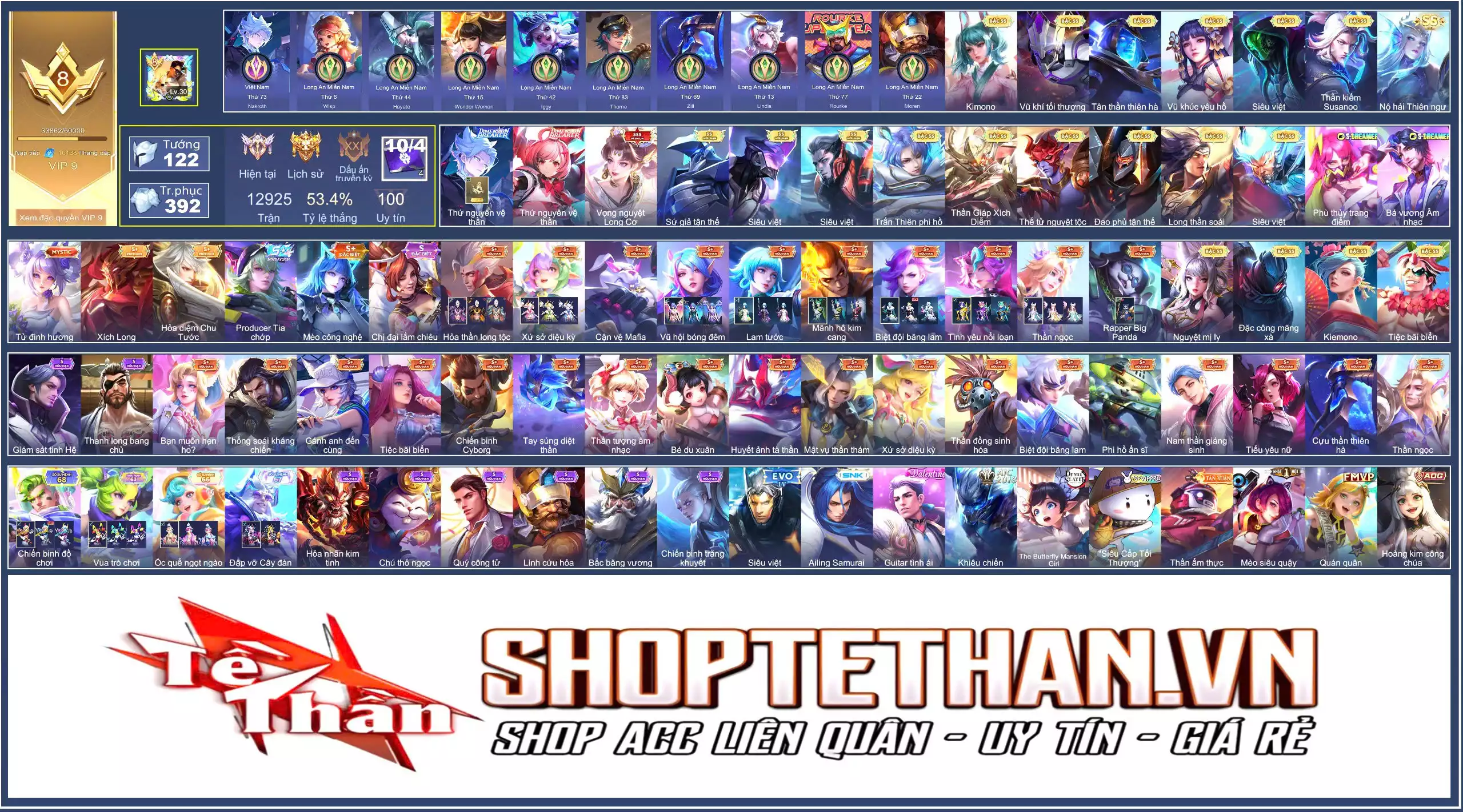 Loại acc | MUA ACC LIÊN QUÂN VIP: SKIN SSS, ANIME, CỤC VÀNG, MÁC THÁCH ĐẤU |