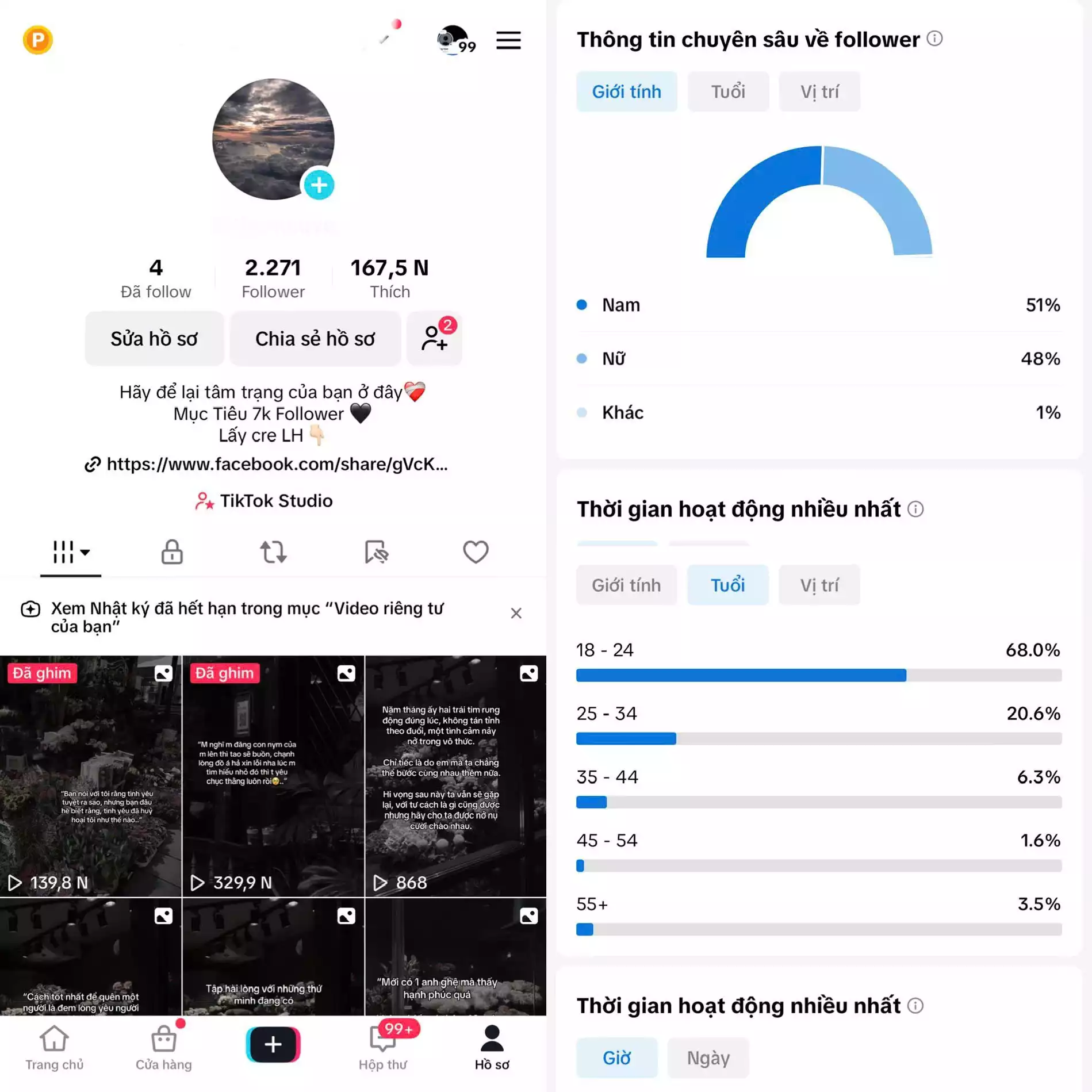 Acc #48929: Chủ đề : Nhạc- Follow VN - Có Live Studio, Tiktok Shop - An toàn, Bao đổi thông tin chính chủ., giá 499,000 đ