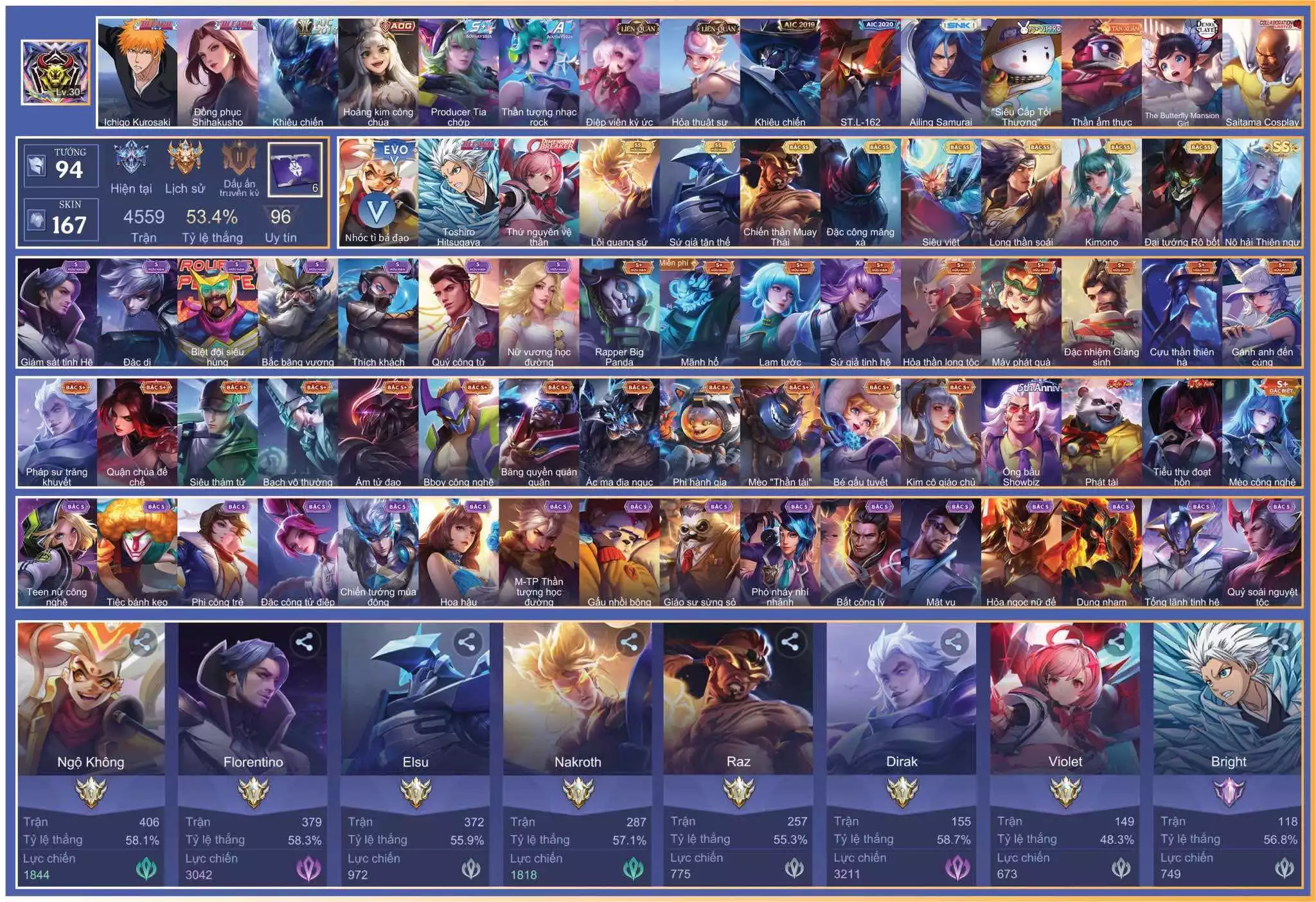 Loại acc | MUA ACC LIÊN QUÂN VIP: SKIN SSS, ANIME, CỤC VÀNG, MÁC THÁCH ĐẤU |