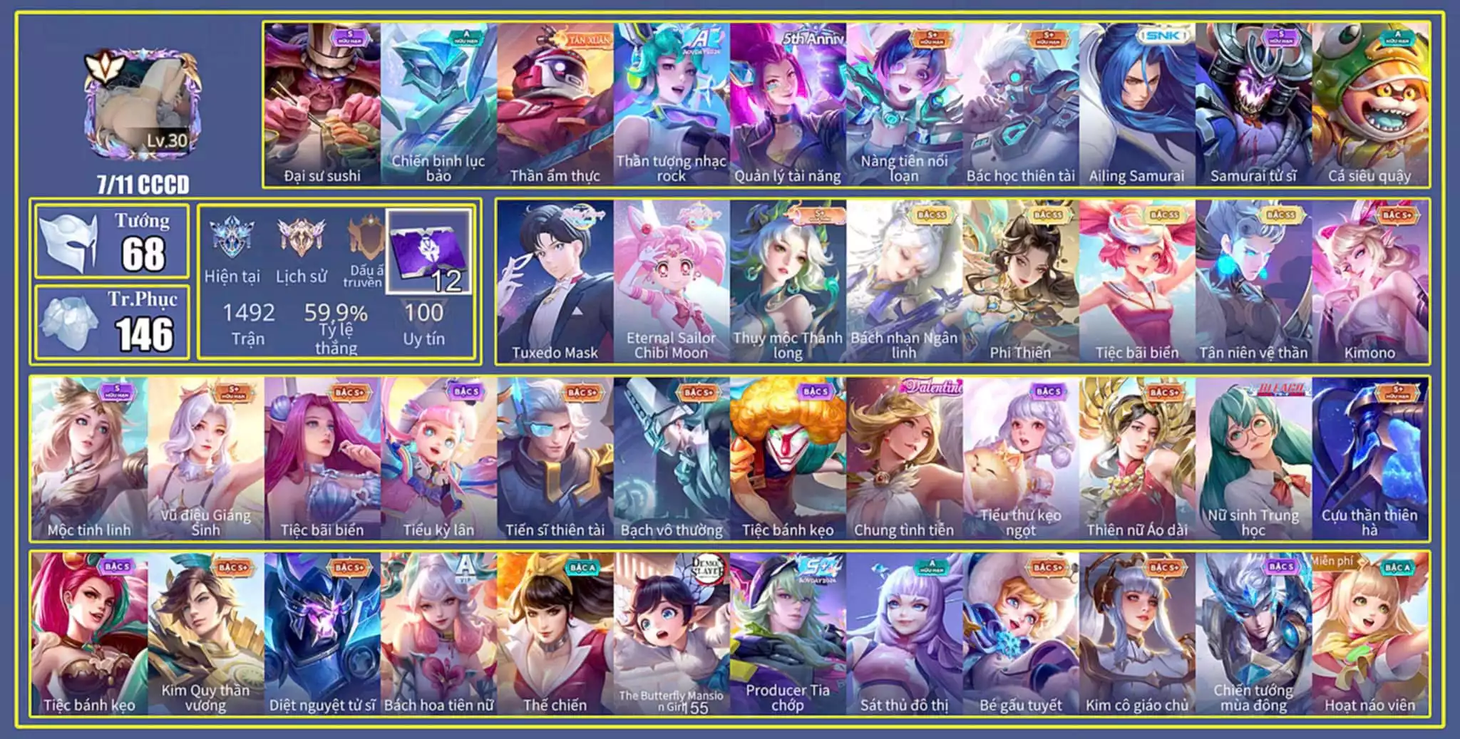 Acc #49240: Alice Chi Bi, Elan'do Tuxedo, Sephera Bách nhạn,.., giá 999,999 đ
