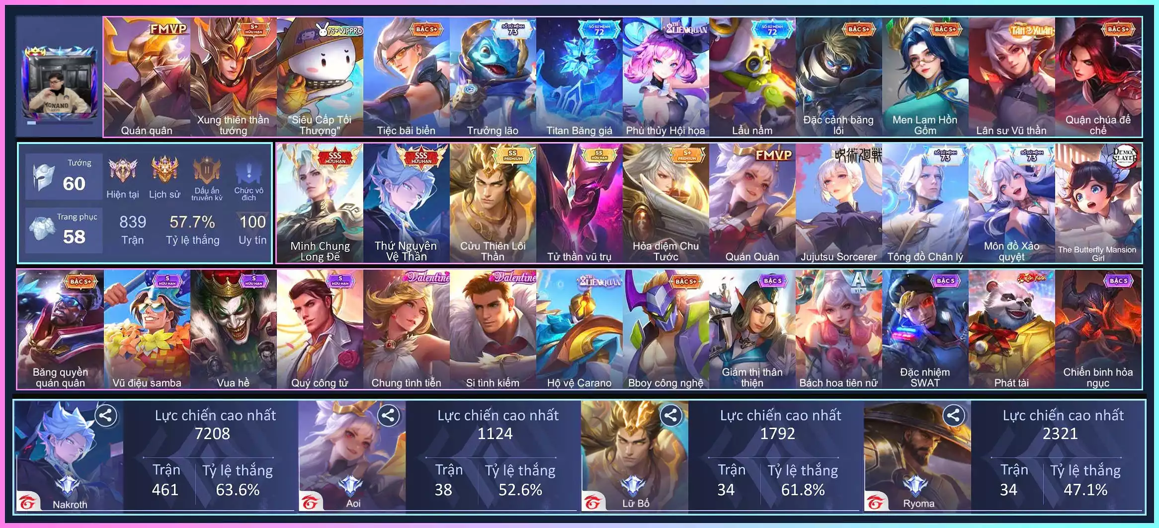Loại acc | MUA ACC LIÊN QUÂN VIP: SKIN SSS, ANIME, CỤC VÀNG, MÁC THÁCH ĐẤU |