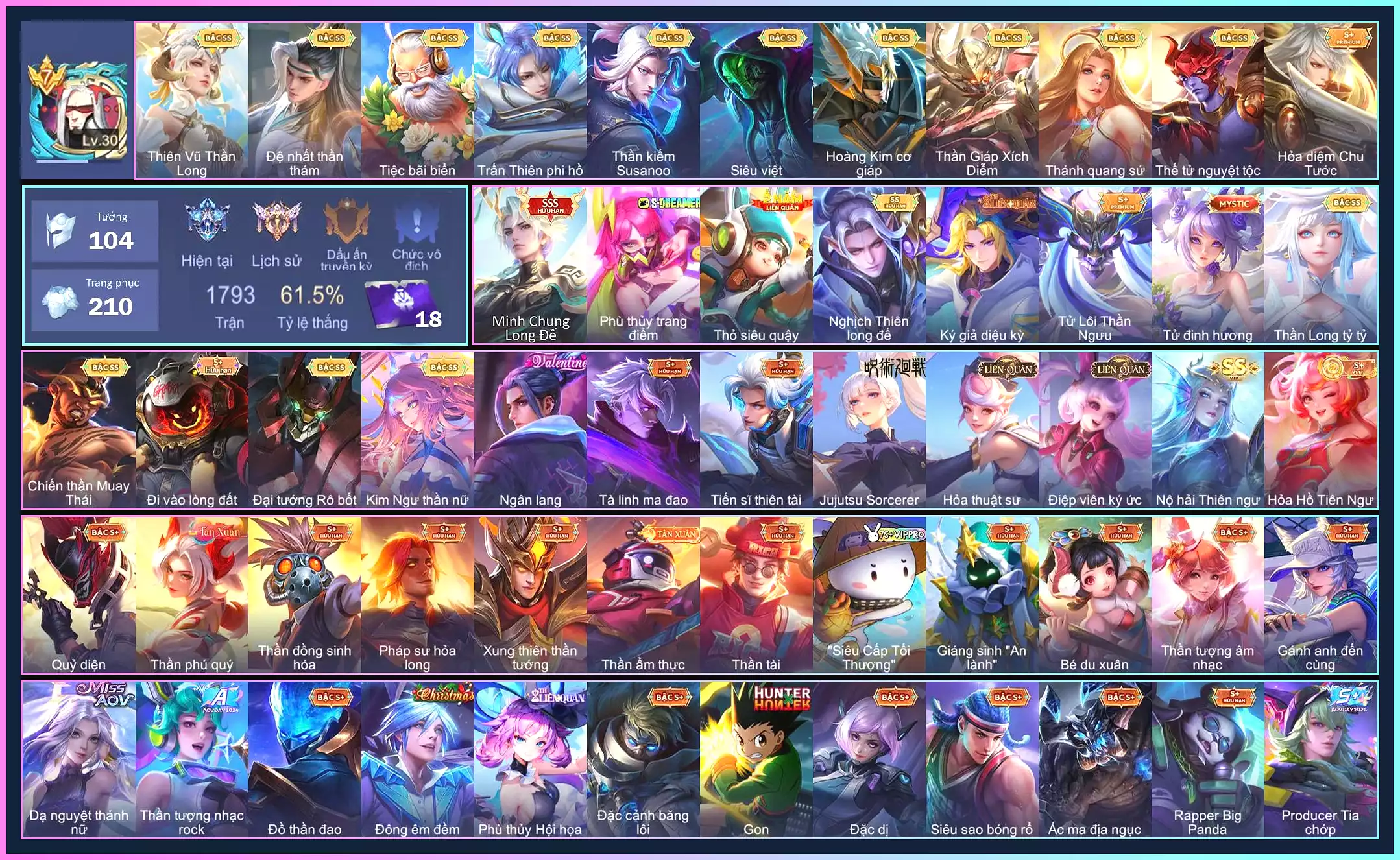 Loại acc | MUA ACC LIÊN QUÂN VIP: SKIN SSS, ANIME, CỤC VÀNG, MÁC THÁCH ĐẤU |
