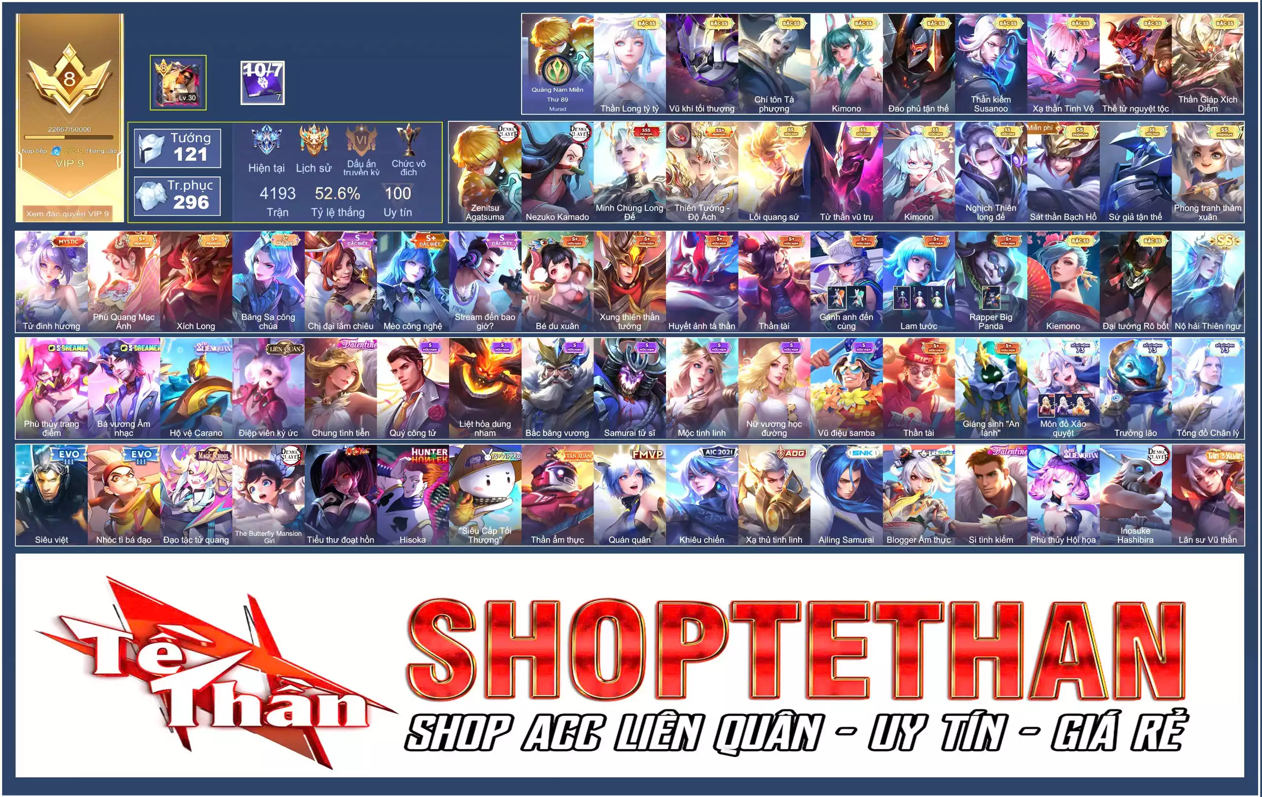 Loại acc | MUA ACC LIÊN QUÂN VIP: SKIN SSS, ANIME, CỤC VÀNG, MÁC THÁCH ĐẤU |