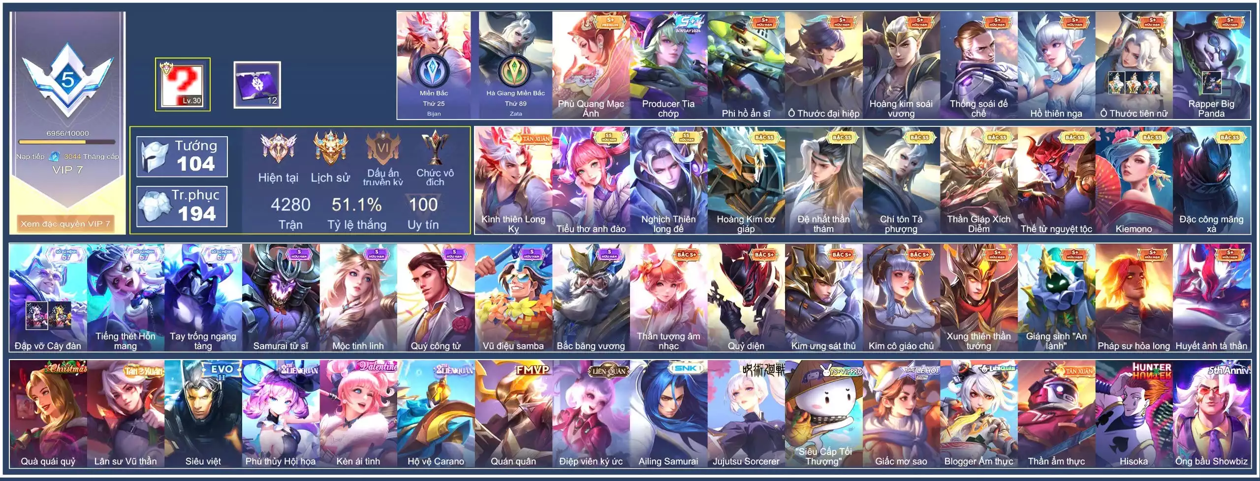 Loại acc | MUA ACC LIÊN QUÂN VIP: SKIN SSS, ANIME, CỤC VÀNG, MÁC THÁCH ĐẤU |